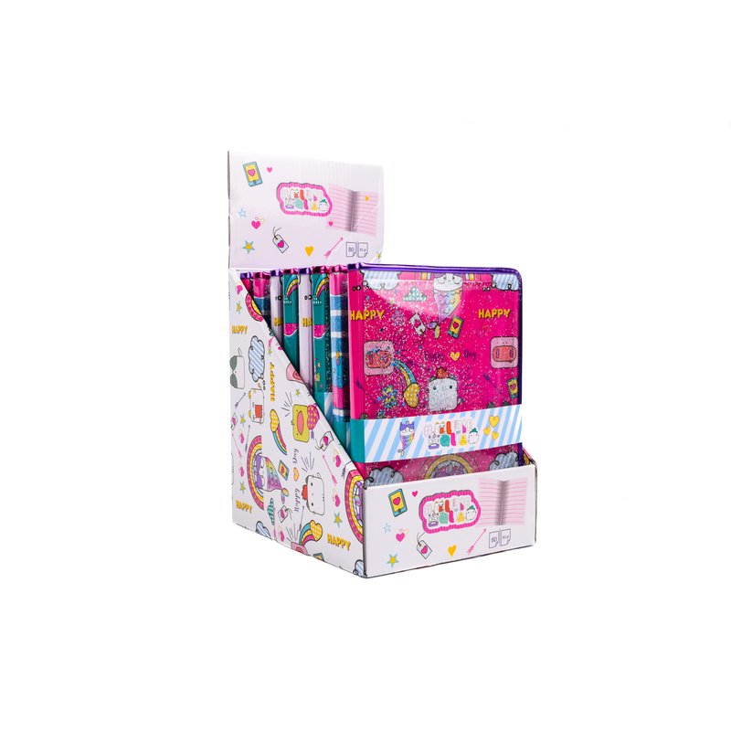 Caiet trendy stralucitor cu sclipici. Perfect pentru a lua notite. Caietul este disponibil in patru culori. Poate fi folosita la școală sau ca si jurnal.