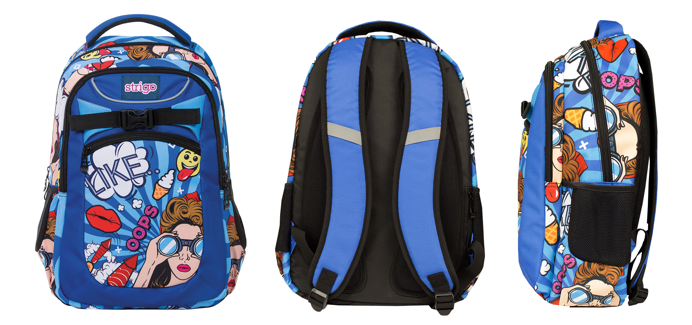 Seria Comic aduce o varietate de culori si elemente din benzile desenate in combinatii deosebite, care cu siguranta vor atrage privirile celor din jur. Cu ghiozdanul strigo ai sansa perfecta sa-ti afirmi unicitatea si sa fii mereu in pas cu trendul.