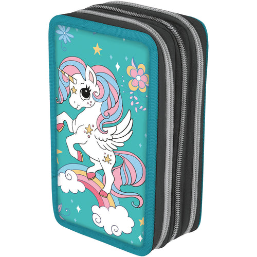 Penar Herlitz neechipat, cu 3 fermoare, dimensiune 20 X 6 X 13 Cm, Motiv Unicorn