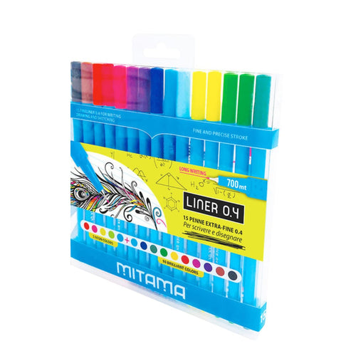Set 15 Carioci colorate Mitama, varf subtire 0.4 mm, forma ergonomica triunghiulara, multicolor