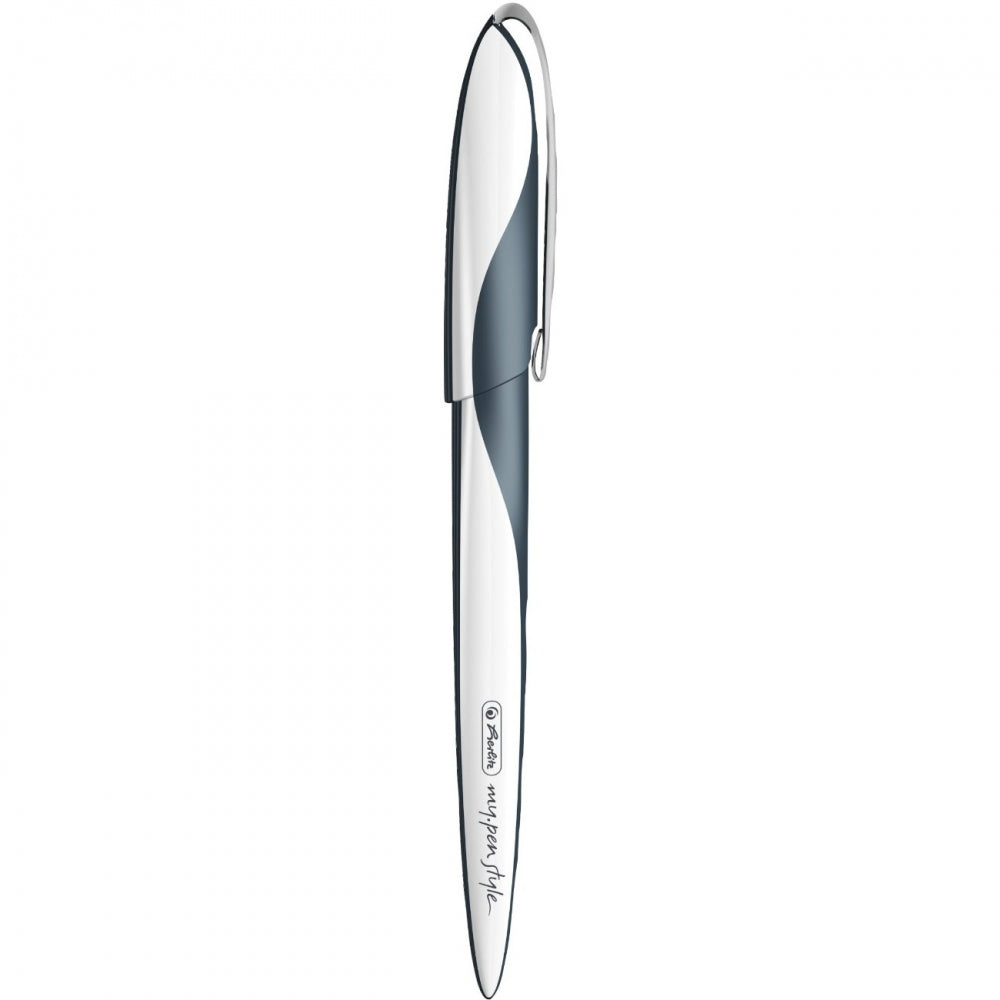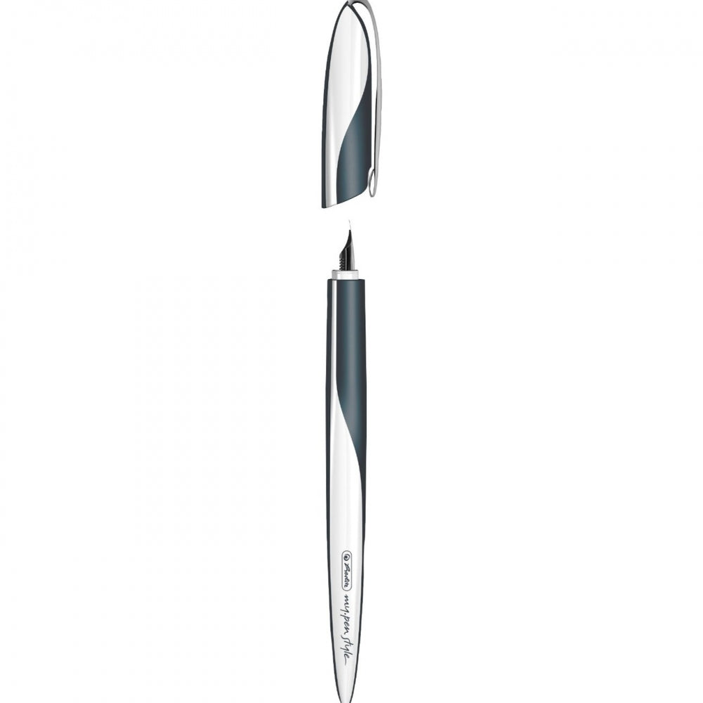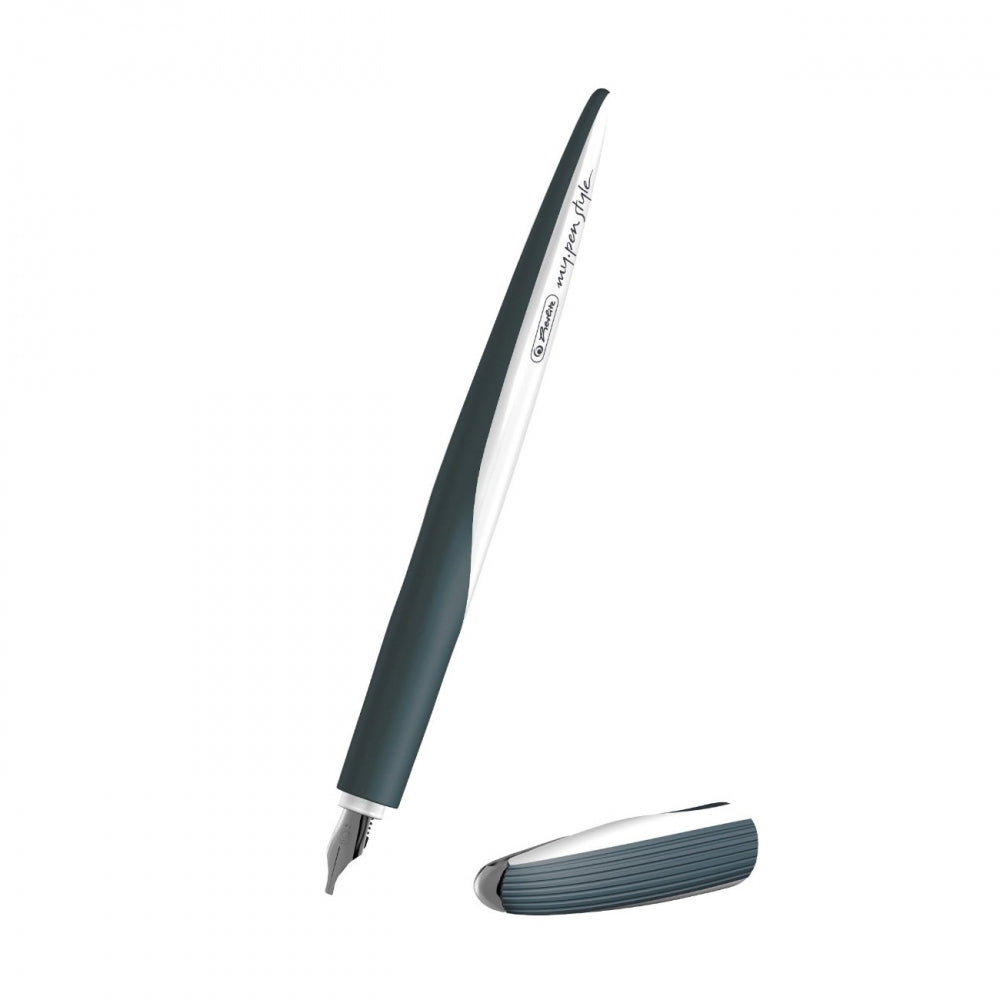 Herlitz, My.Pen Style, plastic, metal, varf penita 0.9 mm, 1.4 mm, 1.9 mm, grip ergonomic , pentru stangaci si dreptaci, model Dark Shale, 1 bucata/cutie