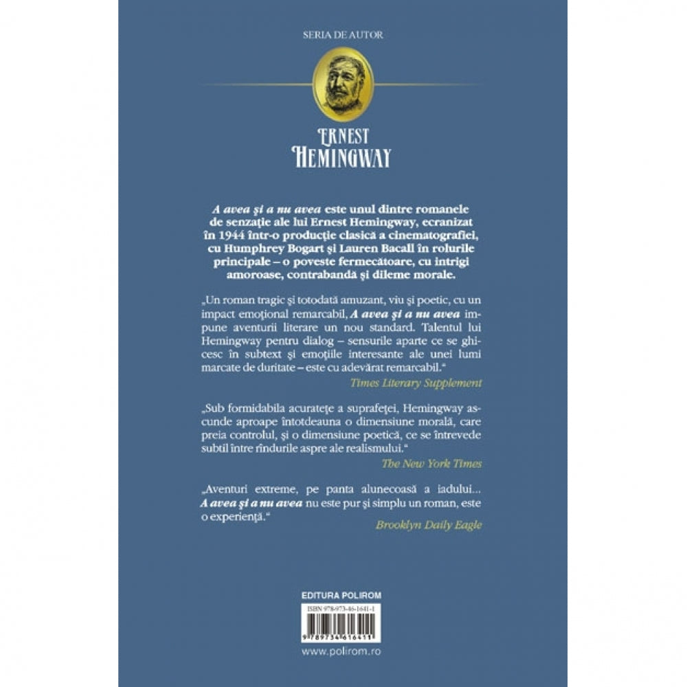 „Un roman tragic si totodata amuzant, viu si poetic, cu un impact emotional puternic, A avea si a nu avea impune aventurii literare un nou standard. Talentul lui Hemingway pentru dialog – sensurile aparte ce se ghicesc in subtext si emotiile interesante ale unei lumi marcate de duritate – este cu adevarat remarcabil.” (The Times Literary Supplement)