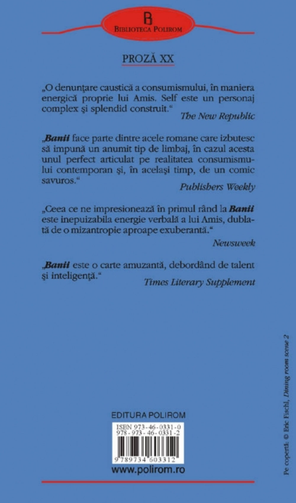 „Banii face parte dintre acele romane care izbutesc sa impuna un anumit tip de limbaj, in cazul acesta unul perfect articulat pe realitatea consumismului contemporan si, in acelasi timp, de un comic savuros.” (Publishers Weekly)