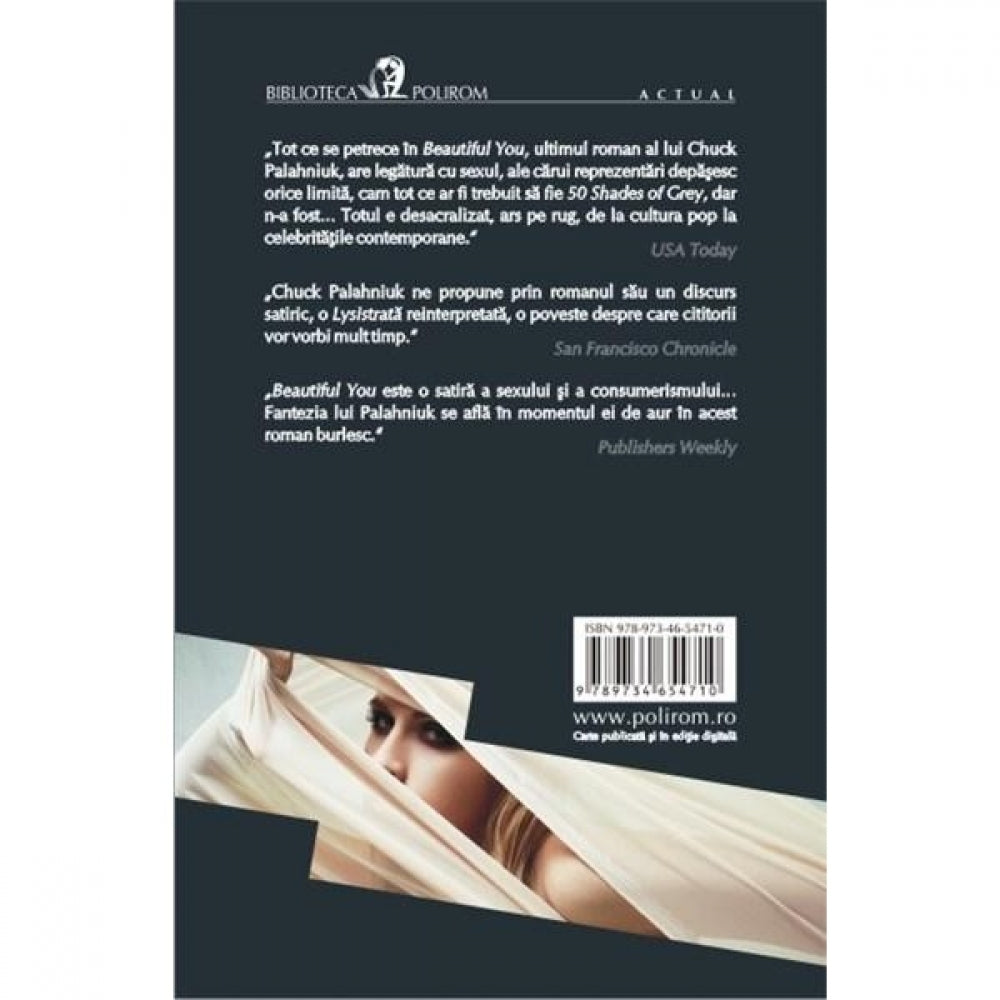 „Tot ce se petrece in Beautiful You, ultimul roman al lui Chuck Palahniuk, are legatura cu sexul, ale carui reprezentari depasesc orice limita, cam tot ce ar fi trebuit sa fie 50 Shades of Grey, dar n-a fost… Totul e desacralizat, ars pe rug, de la cultura pop la celebritatile contemporane.” (USA Today)