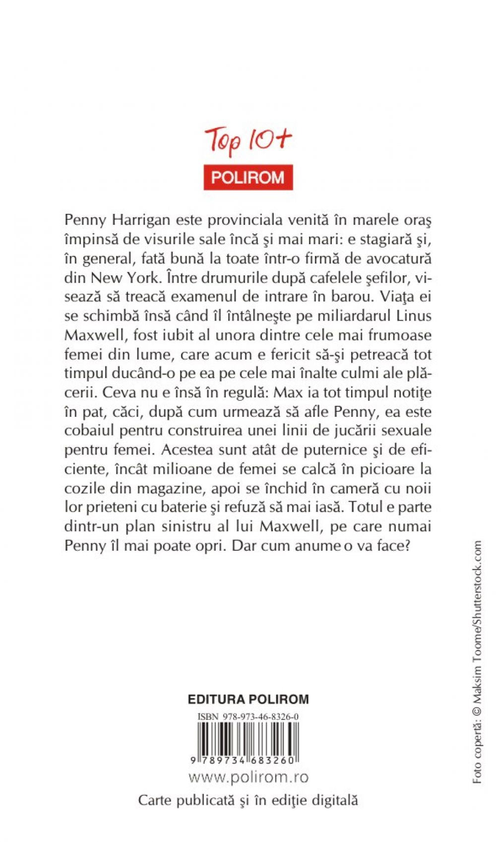 Penny Harrigan este provinciala venita in marele oras impinsa de visurile sale inca si mai mari: e stagiara si, in general, fata buna la toate intr-o firma de avocatura din New York. Intre drumurile dupa cafelele sefilor, viseaza sa treaca examenul de intrare in barou. Viata ei se schimba insa cind il intilneste pe miliardarul Linus Maxwell, fost iubit al unora dintre cele mai frumoase femei din lume, care acum e fericit sa-si petreaca tot timpul ducind-o pe ea pe cele mai inalte culmi ale placerii. Ceva nu e insa in regula: Max ia tot timpul notite in pat, caci, dupa cum urmeaza sa afle Penny, ea este cobaiul pentru construirea unei linii de jucarii sexuale pentru femei. Acestea sint atit de puternice si de eficiente, incit milioane de femei se calca in picioare la cozile din magazine, apoi se inchid in camera cu noii lor prieteni cu baterie si refuza sa mai iasa. Totul e parte dintr-un plan sinistru al lui Maxwell, pe care numai Penny il mai poate opri. Dar cum anume o va face?