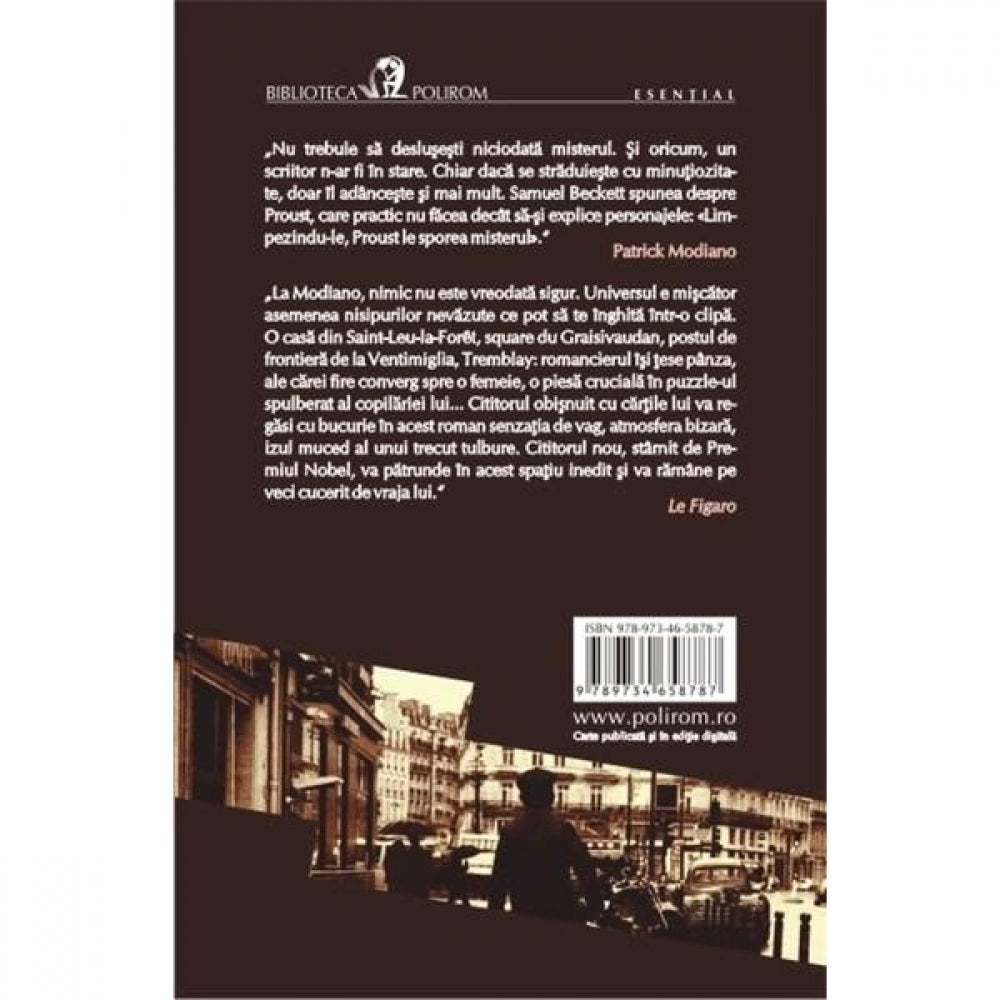 „La Modiano, nimic nu este vreodata sigur. Universul e miscator asemenea nisipurilor nevazute ce pot sa te inghita intr-o clipa. O casa din Saint-Leu-la-Foret, square du Graisivaudan, postul de frontiera de la Ventimiglia, Tremblay: romancierul isi tese pinza, ale carei fire converg spre o femeie, o piesa cruciala in puzzle-ul spulberat al copilariei lui... Cititorul obisnuit cu cartile lui va regasi cu bucurie in acest roman senzatia de vag, atmosfera bizara, izul muced al unui trecut tulbure. Cititorul nou, stirnit de Premiul Nobel, va patrunde in acest spatiu inedit si va ramine pe veci cucerit de vraja lui.” (Le Figaro)