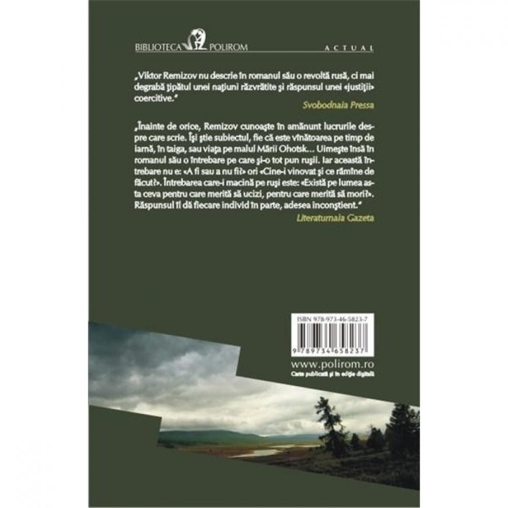„Inainte de orice, Remizov cunoaste in amanunt lucrurile despre care scrie. Isi stie subiectul, fie ca este vinatoarea pe timp de iarna, in taiga, sau viata pe malul Marii Ohotsk… Uimeste insa in romanul sau o intrebare pe care si-o tot pun rusii. Iar aceasta intrebare nu e: «A fi sau a nu fi?» ori «Cine-i vinovat si ce ramine de facut?». Intrebarea care-i macina pe rusi este: «Exista pe lumea asta ceva pentru care merita sa ucizi, pentru care merita sa mori?». Raspunsul il da fiecare individ in parte, adesea inconstient.” (Literaturnaia Gazeta)