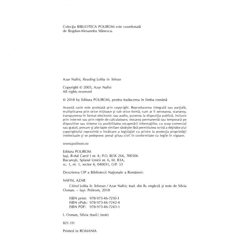 Citind Lolita in Teheran este un roman izvorit dintr-o mare pasiune, o remarcabila explorare a rezistentei in fata tiraniei si o celebrare a puterii literaturii de a elibera.