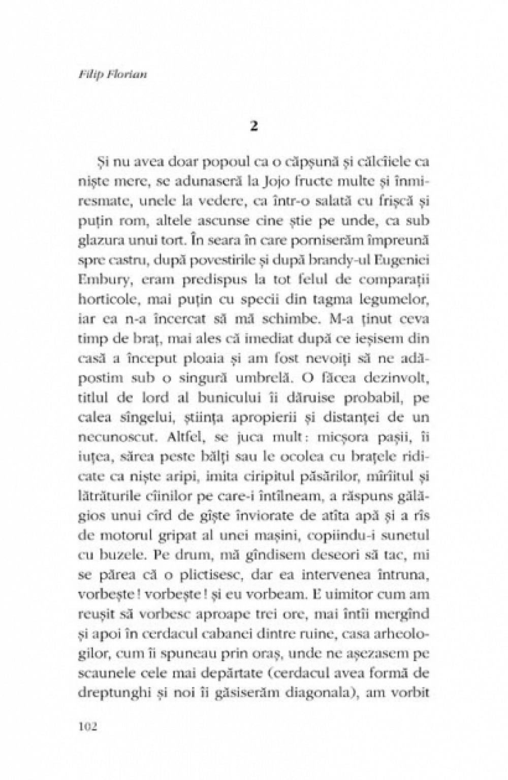 Pacat ca nu exista o zi in calendar, macar una la sapte ani, in care sa se slujeasca in toate bisericile pentru pacea personajelor literare. Ziua asta ar trebui sa semene cu Simbata mortilor si s-ar putea numi oricum, sa zicem joia (ori miercurea) personajelor. Ar fi o zi in care s-ar inalta rugaciuni pentru odihna sufletelor si pentru iertarea pacatelor tuturor acelor fiinte imaginare care traiesc doar intre copertile cartilor, cu biografiile, cu fizionomiile, cu firile si cu destinele pe care li le-au nascocit autorii. Eu unul n-as lipsi de la un asemenea parastas. As pregati cu mina mea coliva si colaci, as cumpara de pe undeva un vin negru, un pic aspru, si le-as imparti pe strada dupa ce-au fost sfintite.” (Filip Florian)