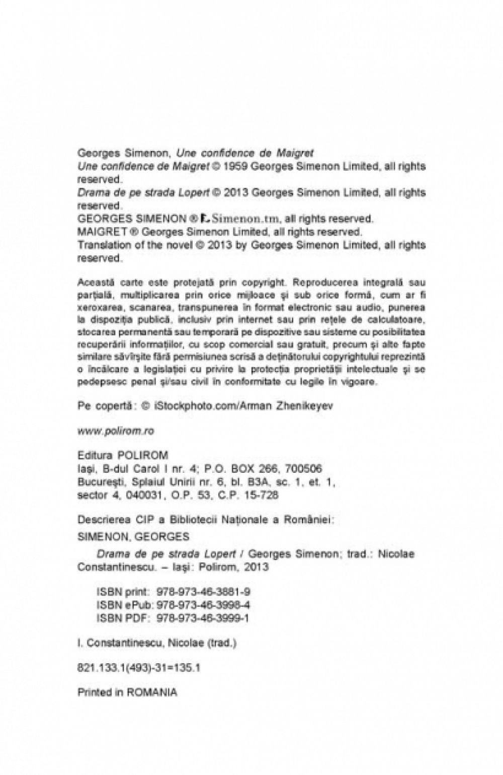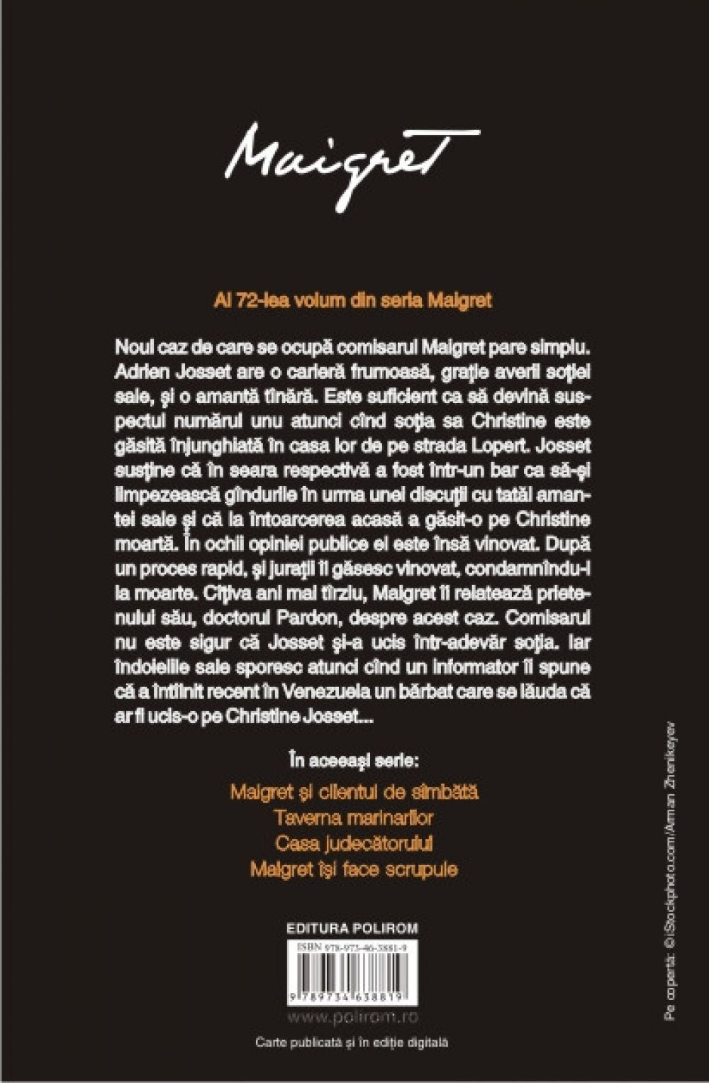 Noul caz de care se ocupa comisarul Maigret pare simplu. Adrien Josset are o cariera frumoasa, gratie averii sotiei sale, si o amanta tinara. Este suficient ca sa devina suspectul numarul unu atunci cind sotia sa Christine este gasita injunghiata in casa lor de pe strada Lopert. Josset sustine ca in seara respectiva a fost intr-un bar ca sa-si limpezeasca gindurile in urma unei discutii cu tatal amantei sale si ca la intoarcerea acasa a gasit-o pe Christine moarta. In ochii opiniei publice el este insa vinovat. Dupa un proces rapid, si juratii il gasesc vinovat, condamnindu-l la moarte. Citiva ani mai tirziu, Maigret ii relateaza prietenului sau, doctorul Pardon, despre acest caz. Comisarul nu este sigur ca Josset si-a ucis intr-adevar sotia. Iar indoielile sale sporesc atunci cind un informator ii spune ca a intilnit recent in Venezuela un barbat care se lauda ca ar fi ucis-o pe Christine Josset...