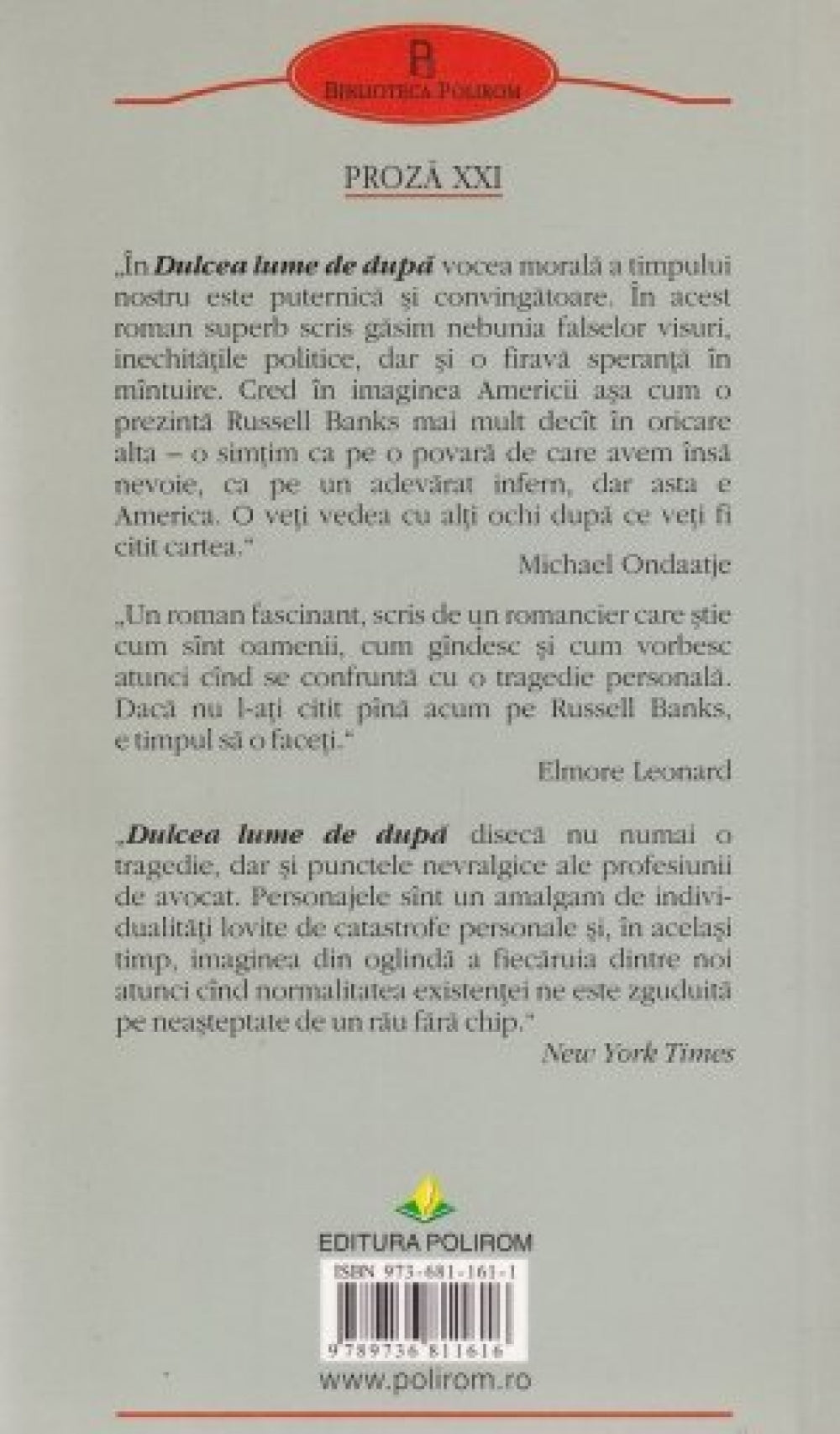 Traducere de Irina Horea. Postfata de Stefan Stoenescu. Romanul a fost ecranizat recent intr-o pelicula care a intrunit elogiile criticii de specialitate. Paginile sale emotioneaza pina la lacrimi prin felul in care dau viata unui mic oras si locuitorilor sai, de la copii la batrini, de la localnici la straini. Cititorul este confruntat cu o realitate pe care o considera doar o posibilitate atita vreme cit nu il afecteaza direct: moartea propriilor copii. Modul in care este inteleasa pierderea si este infruntata durerea tine de moralitatea fiecaruia, dar si de ambitii personale, mai cu seama atunci cind incearca sa raspunda intrebarii inevitabile: Cine este de vina? Tragedia care loveste orasul Sam Dent schimba destinele tuturor celor implicati. Soti care se despart, descoperind ca numai dragostea pentru unicul lor copil ii tinea impreuna; familii care se muta in alte parti, abandonind tot ce-au agonisit o viata, pentru ca nu mai pot suporta sa locuiasca acolo unde le-au murit copiii; vechi traume familiale care ies la suprafata, reprosuri si sentimente de vinovatie care taie in carne vie; cei care au supravietuit se considera norocosi, dar totodata vinovati pentru ca ceilalti au murit; iar altii dau in darul betiei, viata lor nemaigasindu-si rostul.