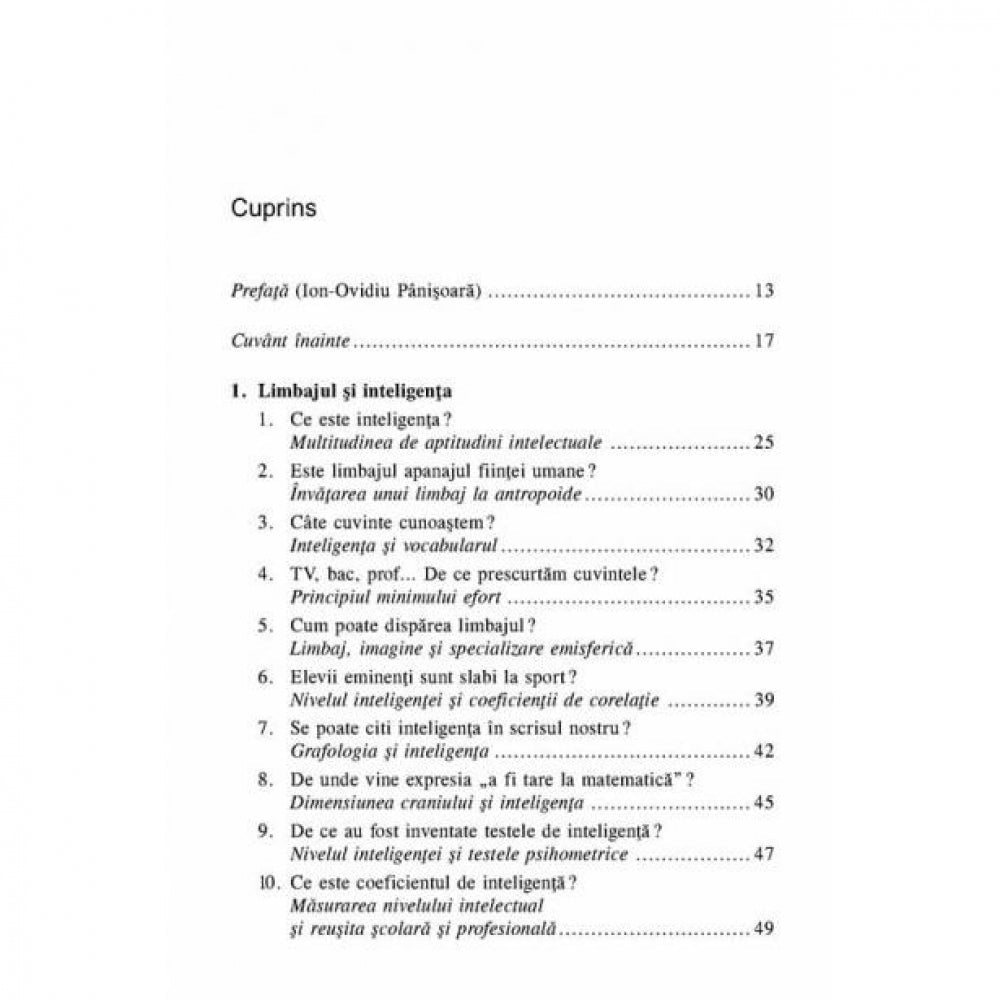 Limbajul si inteligenta • Sintem cu adevarat logici? • Memoria • Cum se explica uitarea? • Perceptia • De la timp la constiinta • Stiati ca somnul are mai multe faze? • Unde se afla inconstientul dumneavoastra? • Motivatiile, emotiile si personalitatea • De ce vrem intotdeauna mai mult? • Ce ne inspaiminta si ce ne face sa plingem?