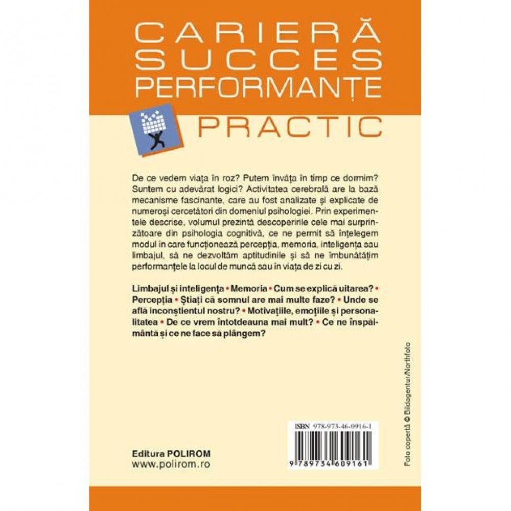 De ce vedem viata in roz? Putem invata in timp ce dormim? Cum se formeaza instinctele?Activitatea cerebrala are la baza mecanisme fascinante, care au fost analizate si explicate de numerosi cercetatori din domeniul psihologiei. Prin experimentele descrise, volumul prezinta descoperirile cele mai surprinzatoare din psihologia cognitiva, ce ne permit sa intelegem modul in care functioneaza perceptia, memoria, inteligenta sau limbajul, sa ne dezvoltam aptitudinile si sa ne imbunatatim performantele la locul de munca sau in viata de zi cu zi.
