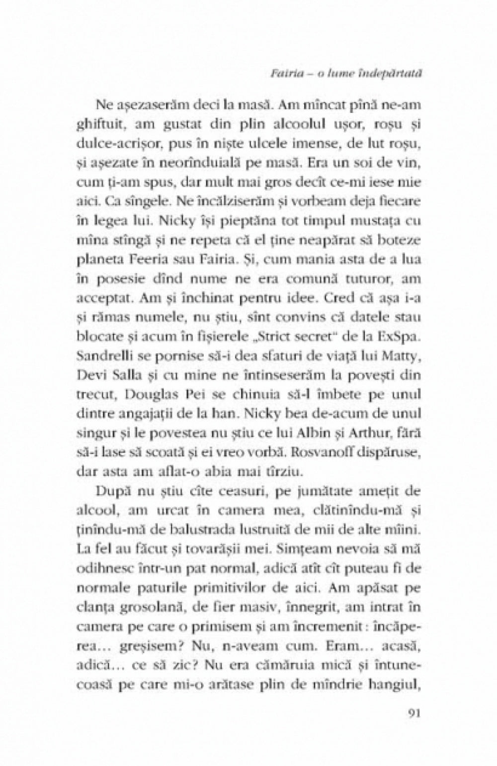 „O expeditie pe o planeta indepartata, Fairia, se transforma intr-o aventura cu centauri, vrajitoare, pitici si apa vie. Totul devine nisip miscator: Fairia seamana cu Pamintul, dar se dovedeste a fi ca Pamintul din mituri si basme. Si nici aceasta iluzie nu tine mult: bastinasii, personaje de poveste, se comporta total aiurea si ne-clasic. Fat-Frumos e un ins incuiat si destul de penibil, vrajitoarea cea rea e de fapt buuuna (in toate sensurile), un cavaler care se repede la lupta vorbeste «in oglinda», ca o banda de magnetofon pusa invers. E ca o poveste in vis, lucruri care-ti par familiare, dar imediat fenteaza logica. Din tot ce-am scris, e cartea mea preferata.“ (Radu Pavel Gheo)