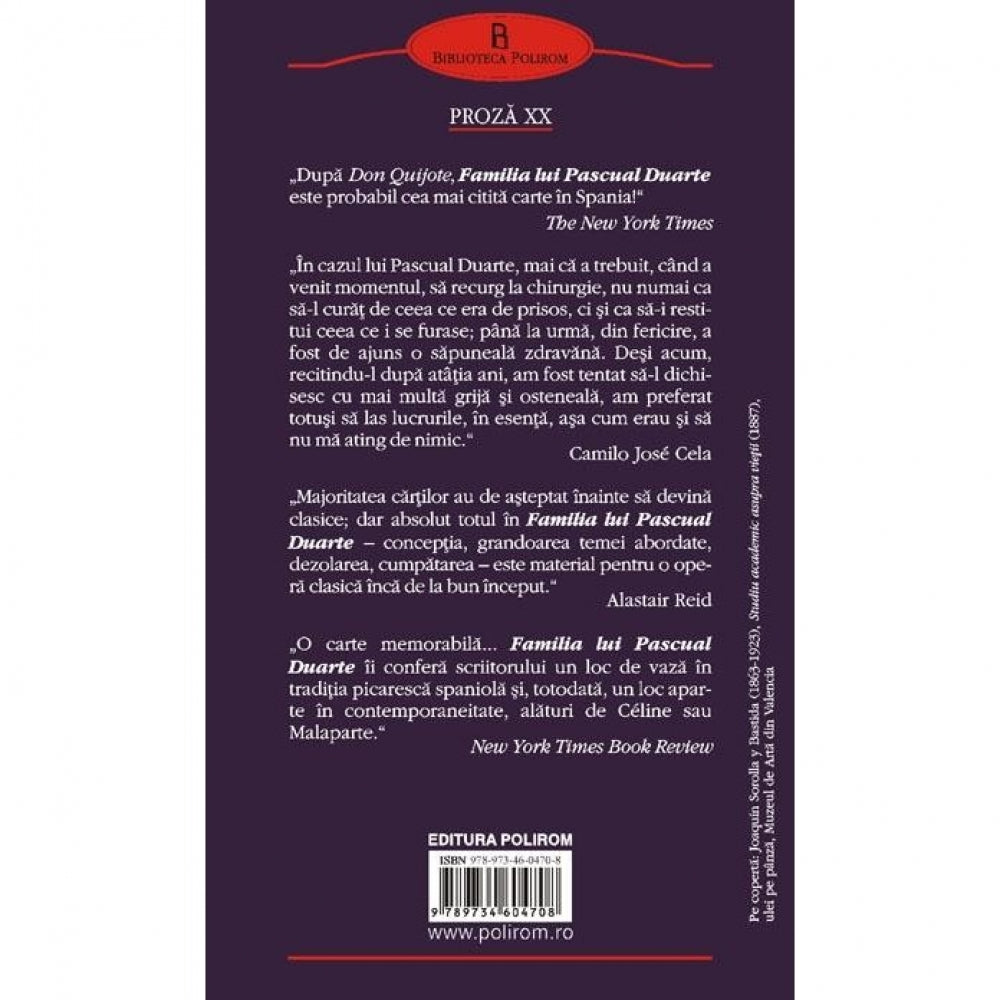 „Dupa Don Quijote, Familia lui Pascual Duarte este probabil cea mai citita carte in Spania!“ (The New York Times)