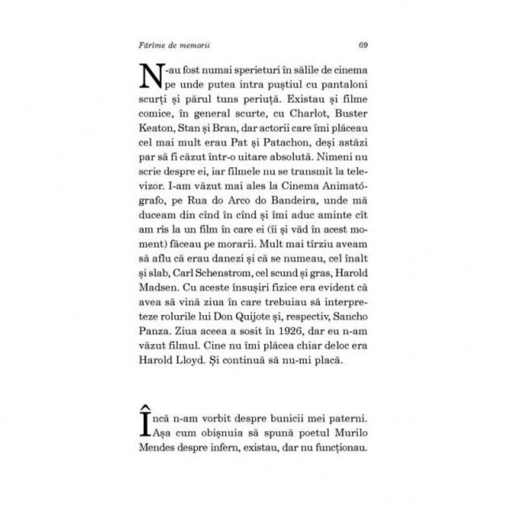 „Anumiti autori, printre care ma includ, privilegiaza, in povestile pe care le spun, nu istoria pe care au trait-o sau o traiesc (fugind astfel de capcanele confesionalismului literar), ci istoria propriei memorii, cu exactitatile si scaparile ei, cu minciunile ei care sint in acelasi timp adevaruri si adevarurile ei care nu se pot feri de a fi in acelasi timp minciuni. Daca ma gindesc bine, eu sint numai memoria pe care o am, si aceasta este singura istorie pe care vreau si pot s-o povestesc.“ - Jose Saramago