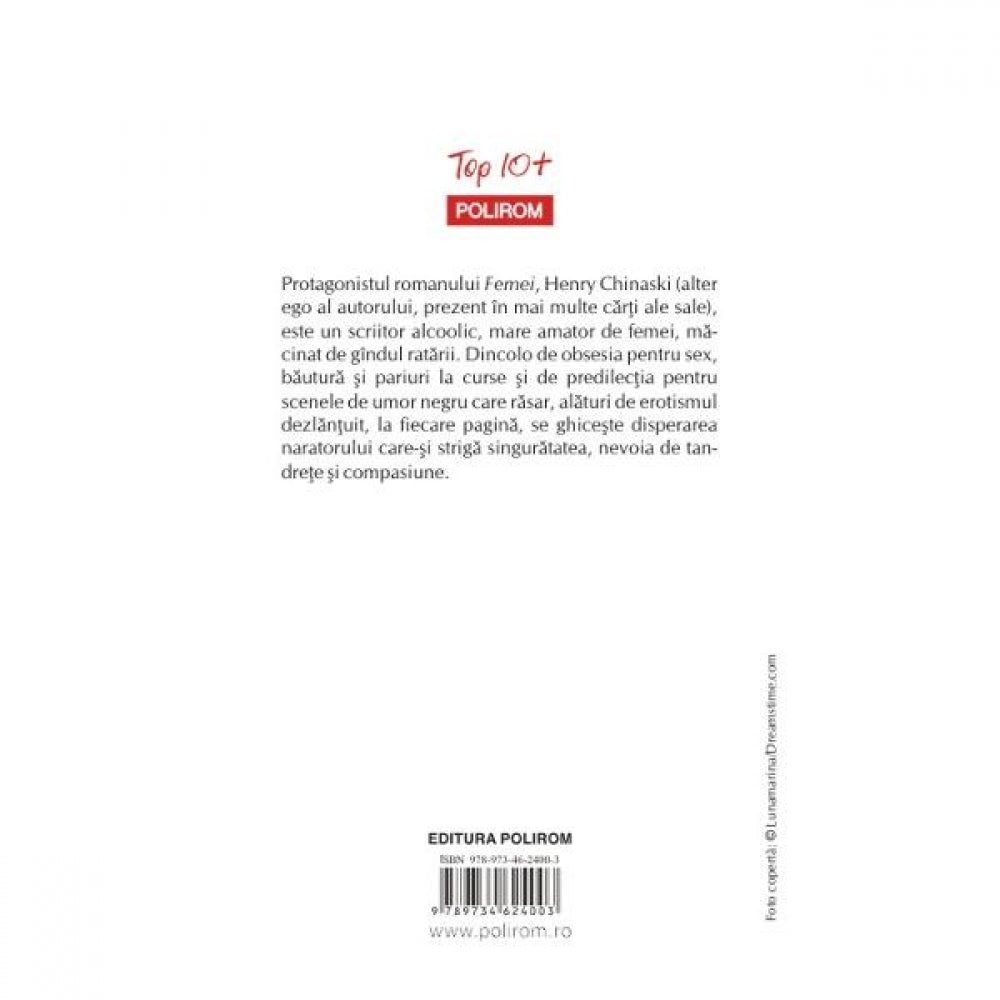 Protagonistul romanului Femei, Henry Chinaski (alter ego al autorului, prezent in mai multe carti ale sale), este un scriitor alcoolic, mare amator de femei, macinat de gindul ratarii. Dincolo de obsesia pentru sex, bautura si pariuri la curse si de predilectia pentru scenele de umor negru care rasar, alaturi de erotismul dezlantuit, la fiecare pagina, se ghiceste disperarea naratorului care-si striga singuratatea, nevoia de tandrete si compasiune.