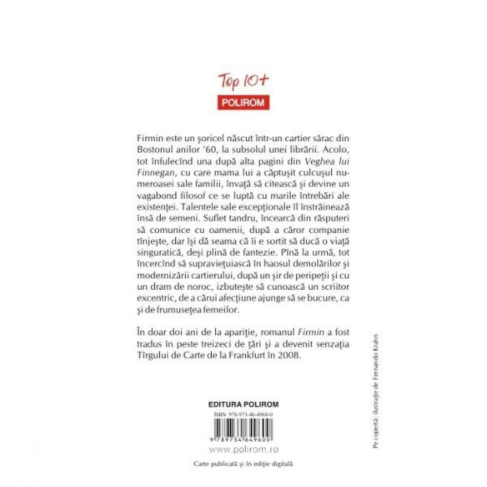 Firmin este un soricel nascut intr-un cartier sarac din Bostonul anilor ’60, la subsolul unei librarii. Acolo, tot infulecind una dupa alta pagini din Veghea lui Finnegan, cu care mama lui a captusit culcusul numeroasei sale familii, invata sa citeasca, devine un vagabond filosof ce se lupta cu marile intrebari ale existentei. Talentele sale exceptionale il instraineaza insa de semeni. Un suflet tandru, incearca din rasputeri sa comunice cu oamenii, dupa a caror companie tinjeste, dar isi da seama ca ii e sortit sa duca o viata singuratica, desi plina de fantezie. Pina la urma, tot incercind sa supravietuiasca in haosul demolarilor si modernizarii cartierului, dupa un sir de peripetii si cu un dram de noroc, izbuteste sa cunoasca un scriitor excentric, de a carui afectiune ajunge sa se bucure, ca si de frumusetea femeilor.