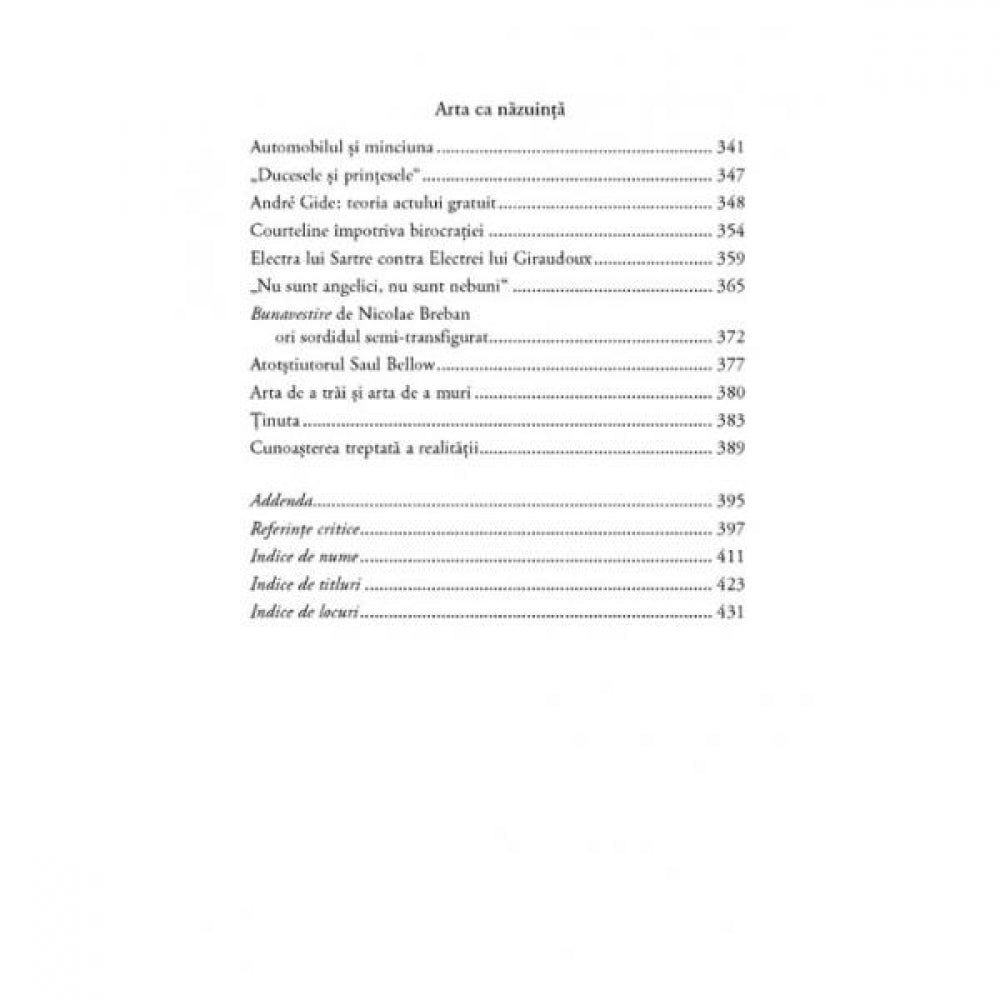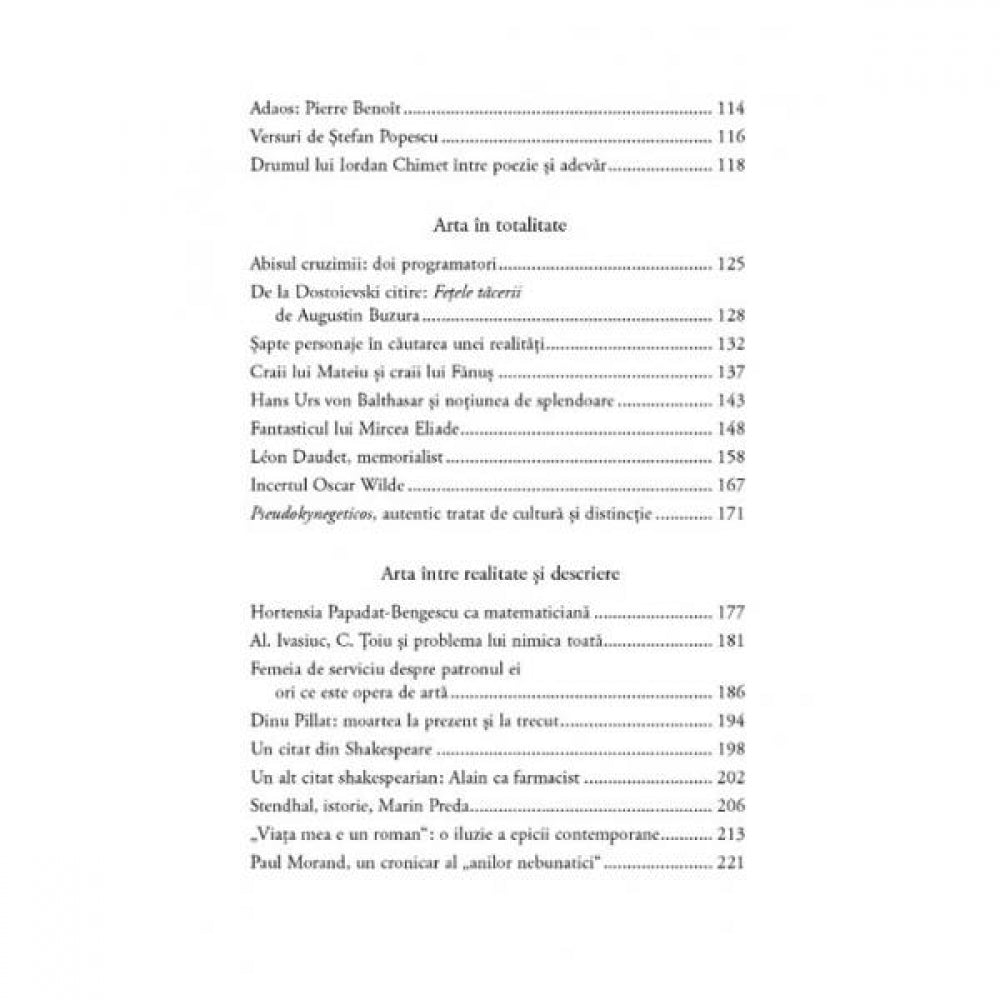 Preocupat de arta si puterea ei de fascinatie, N. Steinhardt cauta forme artistice in literatura, dar si in teatru sau in viata de zi cu zi. Captivat de D’Annunzio sau Malraux si „setea lor de a trai si faptui”, de Jules Verne si insulele sale misterioase, de Eliade si prozele sale fantastice, ii dezaproba in schimb pe autorii din ale caror jurnale razbat plictiseala si indiferenta. Volumul se incheie cu un remarcabil eseu al lui Steinhardt, „Arta ca nazuinta”, o meditatie asupra artei de a trai si a muri cu demnitate.