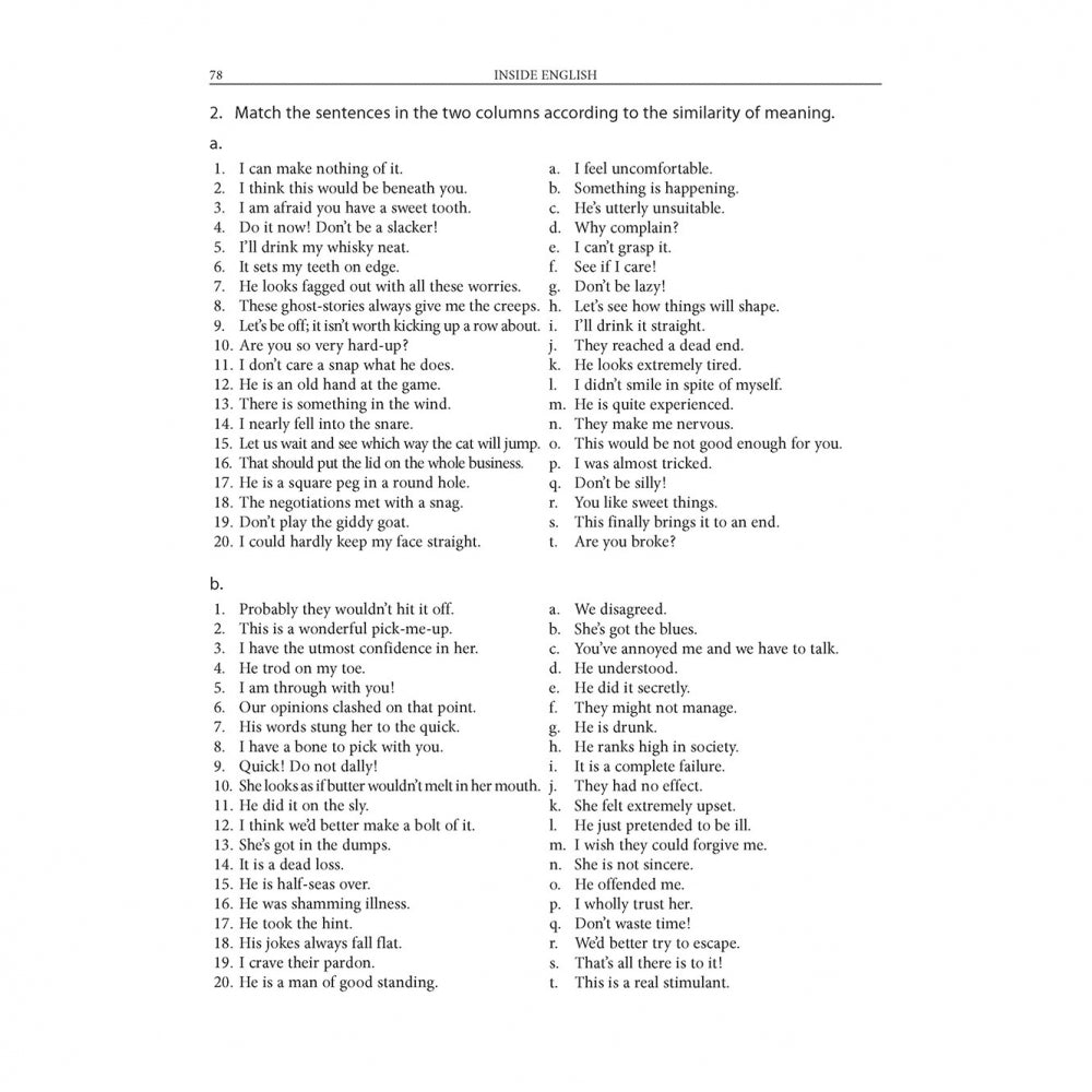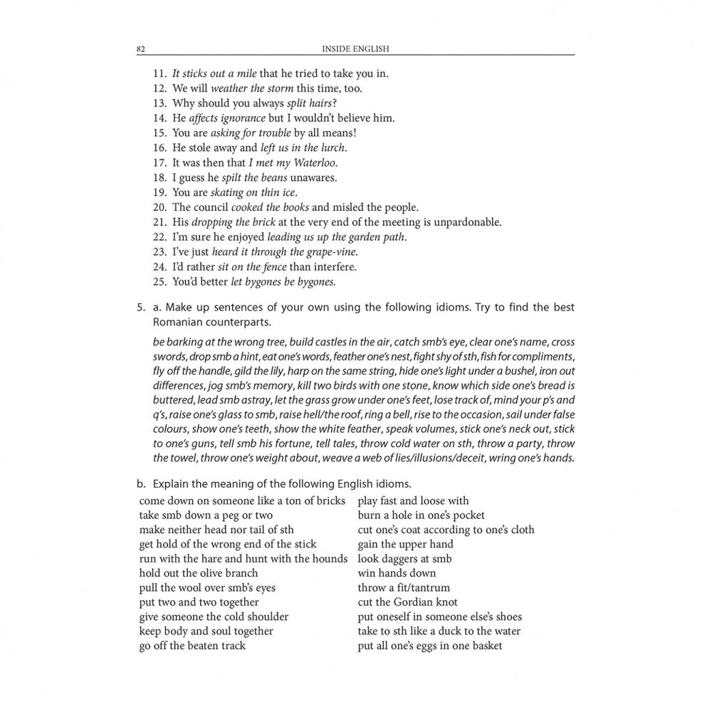 Volumul Inside English este un instrument de lucru pentru toate tipurile de examene de limba engleza, propunindu-le cunoscatorilor de nivel mediu-avansat diferite tipuri de exercitii cu noi dificultati de gramatica si de vocabular.