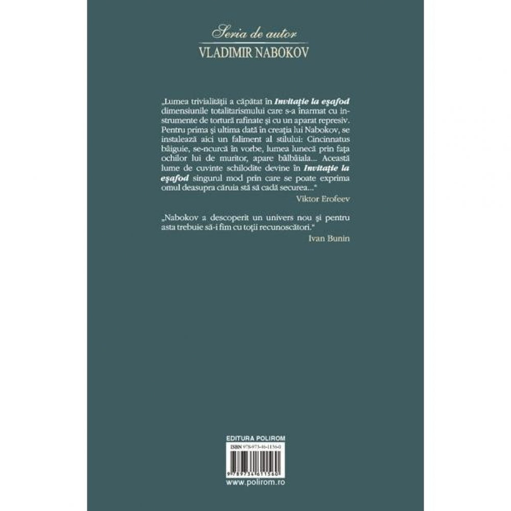 „Lumea trivialitatii a capatat inInvitatie la esafoddimensiunile totalitarismului care s-a inarmat cu instrumente de tortura rafinate si cu un aparat represiv. Pentru prima si ultima data in creatia lui Nabokov, se instaleaza aici un faliment al stilului: Cincinnatus biiguie, se-ncurca in vorbe, lumea luneca prin fata ochilor lui de muritor, apare bilbiiala... Aceasta lume de cuvinte schilodite devine inInvitatie la esafodsingurul mod prin care se poate exprima omul deasupra caruia sta sa cada securea...” - Viktor Erofeev
