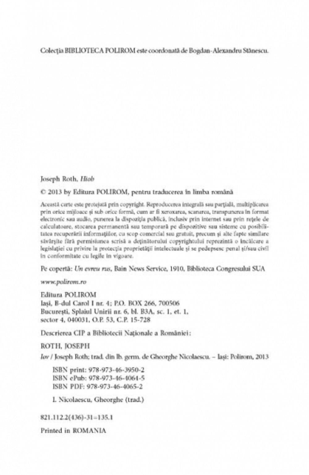 „Iov este mai mult decit un roman si o legenda, este o opera poetica perfecta, menita sa traiasca atunci cind tot ce am creat noi, contemporanii lui Roth, va fi disparut. Greu iti poti imagina ca poate fi creat ceva mai bun prin unitatea constructiei, profunzimea perceptiei, puritate ori prin muzicalitatea limbii.” (Stefan Zweig)