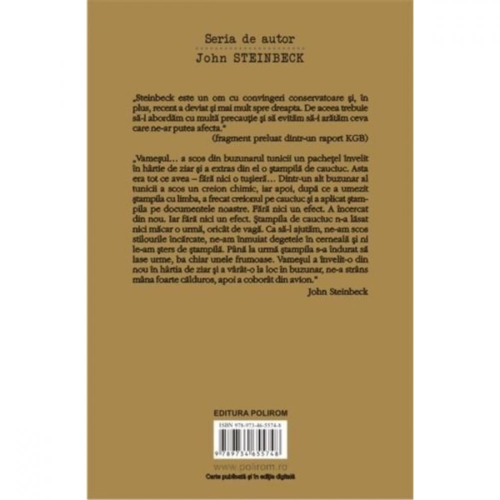 „Steinbeck este un om cu convingeri conservatoare si, in plus, recent a deviat si mai mult spre dreapta. De aceea trebuie sa-l abordam cu multa precautie si sa evitam sa-i aratam ceva care ne-ar putea afecta.” (fragment preluat dintr-un raport KGB)
