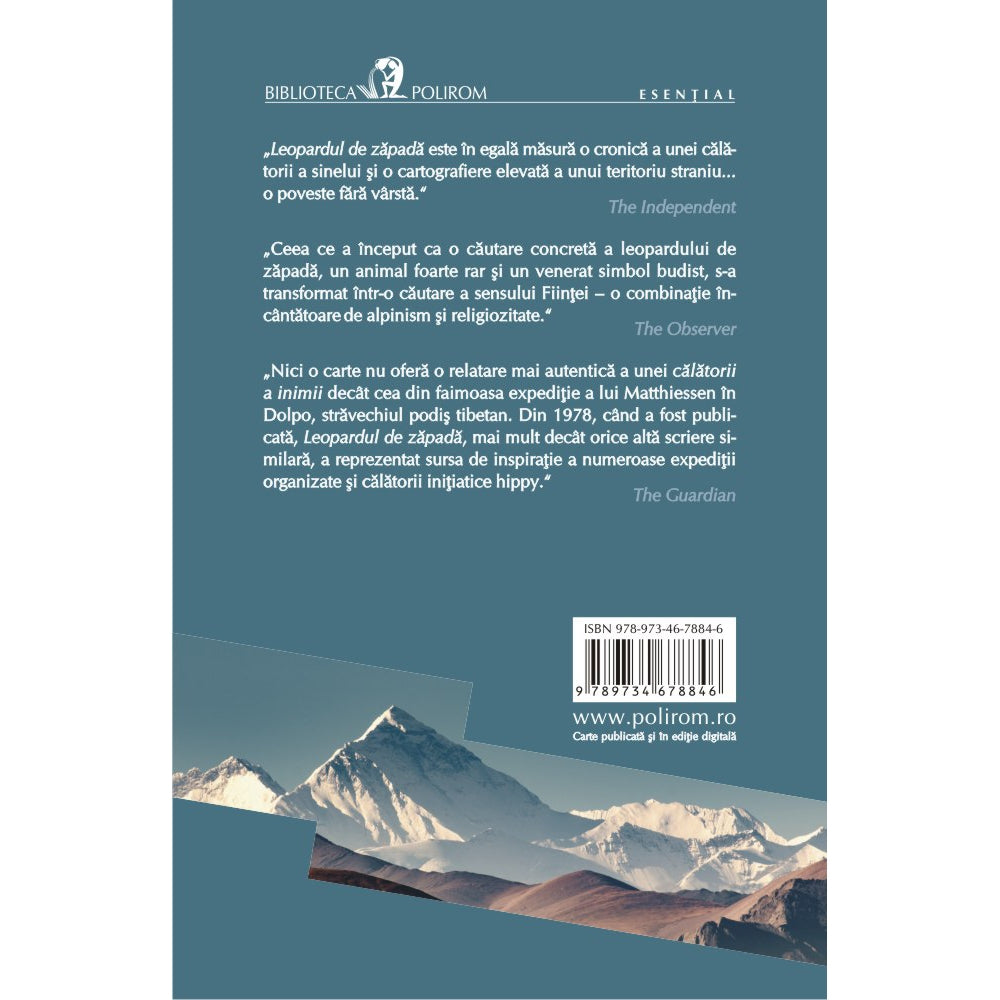 „Nici o carte nu ofera o relatare mai autentica a unei calatorii a inimii decit cea din faimoasa expeditie a lui Matthiessen in Dolpo, stravechiul podis tibetan. Din 1978, cind a fost publicata, Leopardul de zapada, mai mult decit orice alta scriere similara, a reprezentat sursa de inspiratie a numeroase expeditii organizate si calatorii initiatice hippy.” (The Guardian)