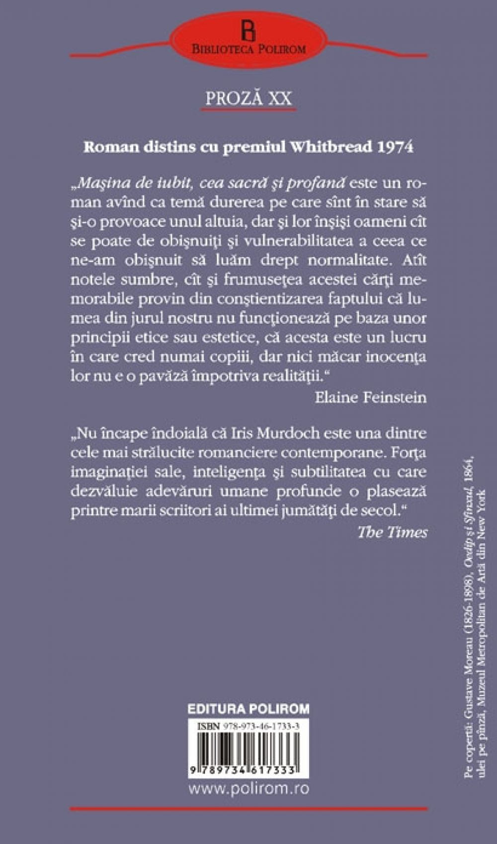„Nu incape indoiala ca Iris Murdoch este una dintre cele mai stralucite romanciere contemporane. Forta imaginatiei sale, inteligenta si subtilitatea cu care dezvaluie adevaruri umane profunde o plaseaza printre marii scriitori ai ultimei jumatati de secol.” (The Times)