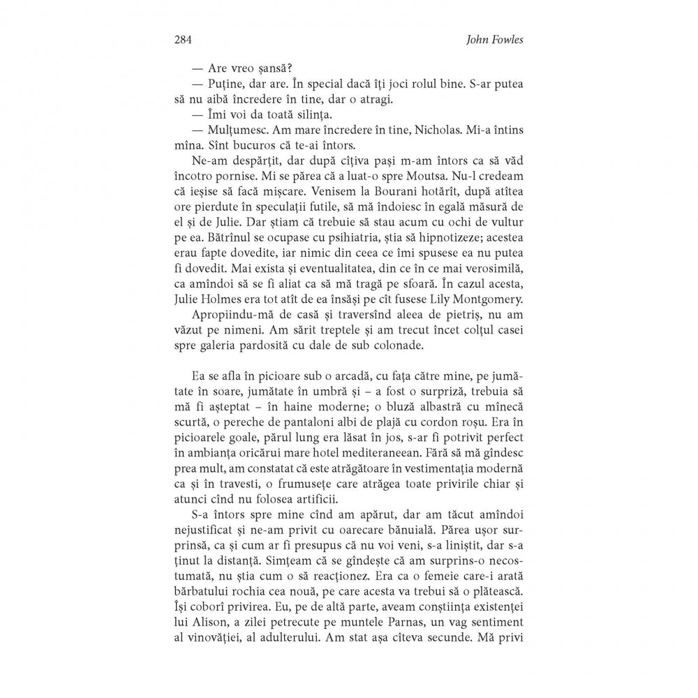 „O carte minunata, cu o tensiune innebunitoare, in care sentimentele si inteligenta sint pe post de cobai. Domnul Fowles abordeaza un subiect dificil, dar temerara incercare a domniei sale merge… drept la tinta.” (Sunday Telegraph)