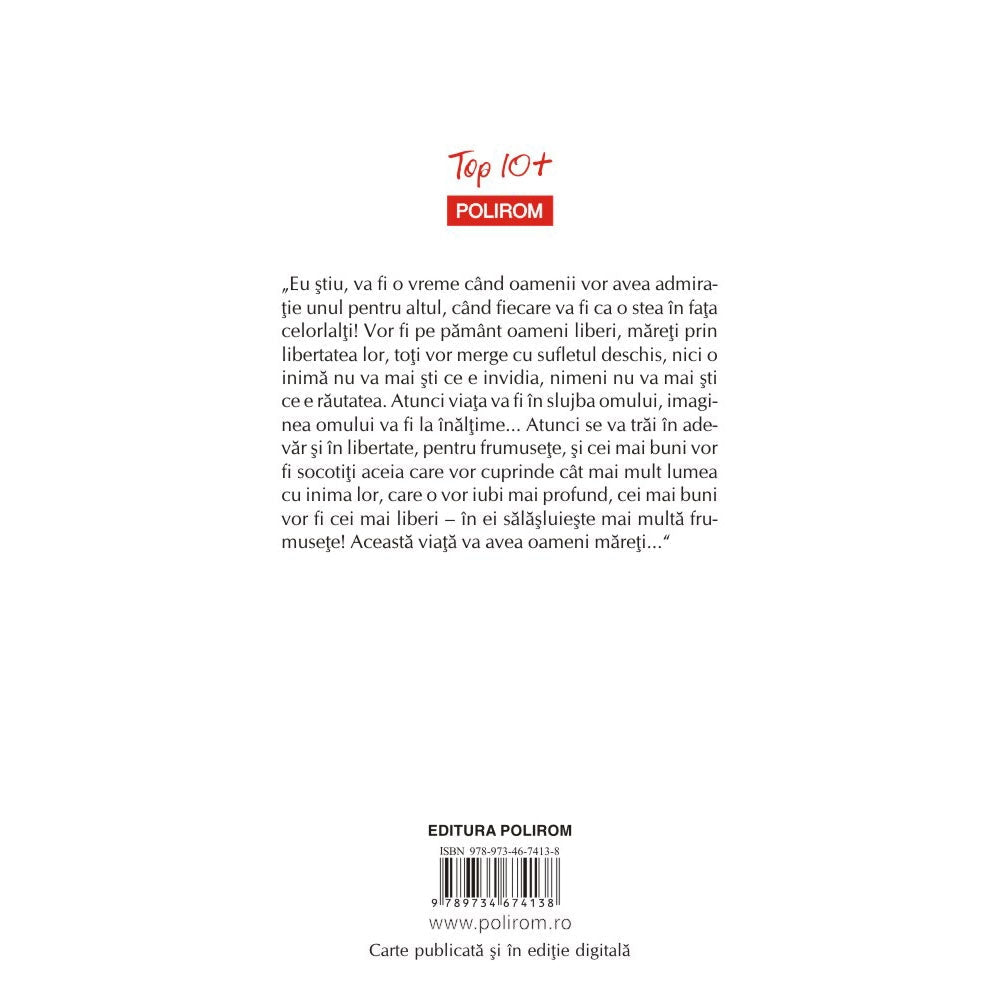 „Eu stiu, va fi o vreme cind oamenii vor avea admiratie unul pentru altul, cind fiecare va fi ca o stea in fata celorlalti! Vor fi pe pamint oameni liberi, mareti prin libertatea lor, toti vor merge cu sufletul deschis, nici o inima nu va mai sti ce e invidia, nimeni nu va mai sti ce e rautatea. Atunci viata va fi in slujba omului, imaginea omului va fi la inaltime...