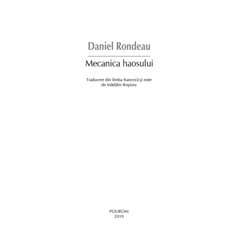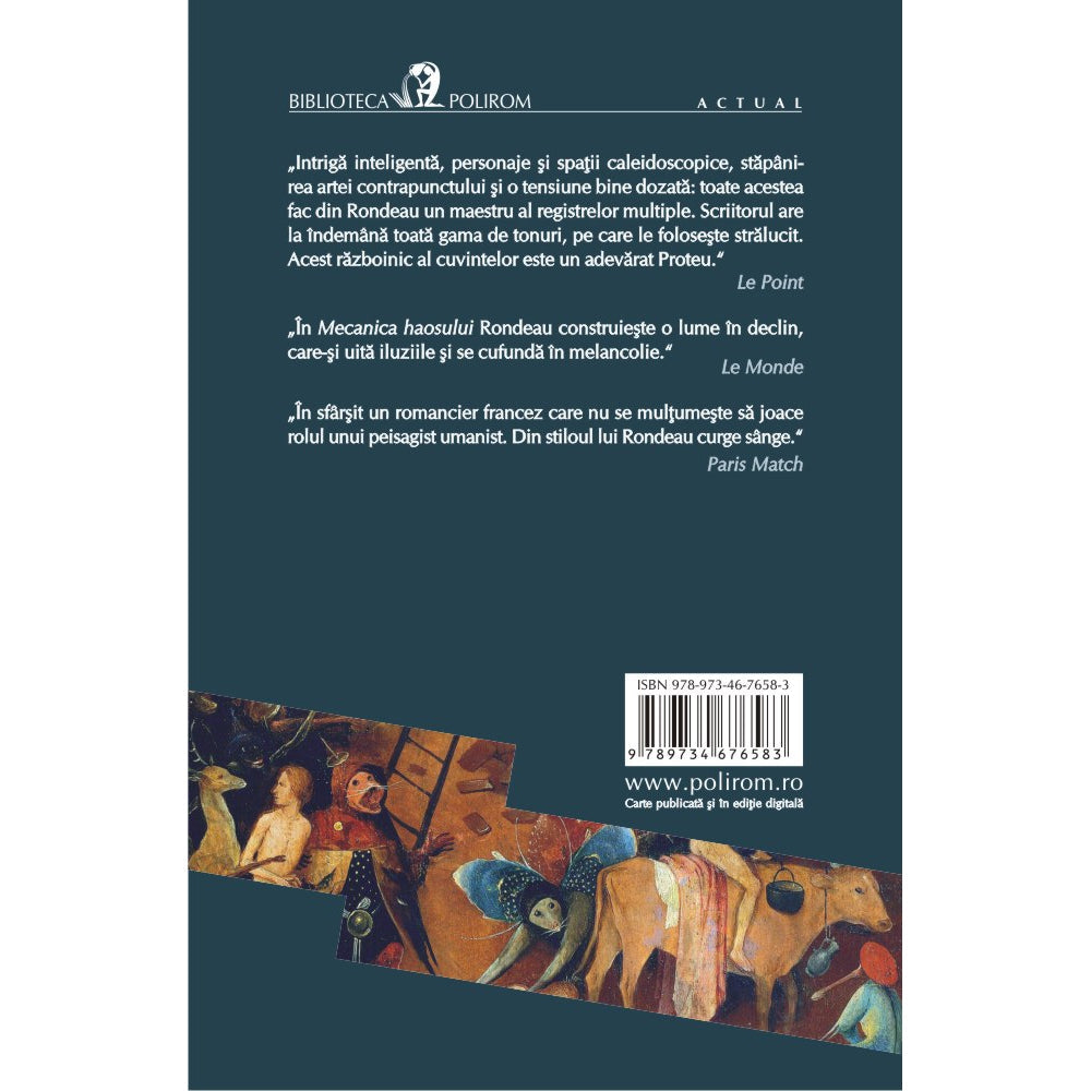 „In Mecanica haosului Rondeau construieste o lume in declin, care-si uita iluziile si se cufunda in melancolie.” (Le Monde)