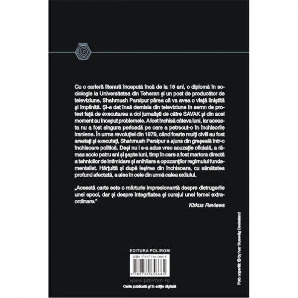 Cu o cariera literara inceputa inca de la 16 ani, o diploma in sociologie la Universitatea din Teheran si un post de producator de televiziune, Shahrnush Parsipur parea ca va avea o viata linistita si implinita. Si-a dat insa demisia din televiziune in semn de protest fata de executarea a doi jurnalisti de catre SAVAK si din acel moment au inceput problemele. A fost inchisa citeva luni, iar aceasta nu a fost singura perioada pe care a petrecut-o in inchisorile iraniene. In urma revolutiei din 1979, cind foarte multi civili au fost arestati si executati, Shahrnush Parsipur a ajuns din greseala intr-o inchisoare politica. Desi nu i s-a adus vreo acuzatie oficiala, a ramas acolo patru ani si sapte luni, timp in care a fost martora directa a tehnicilor de intimidare si anihilare a opozantilor regimului fundamentalist. Hartuita si dupa iesirea din inchisoare, cu sanatatea profund afectata, a ales in cele din urma calea exilului.