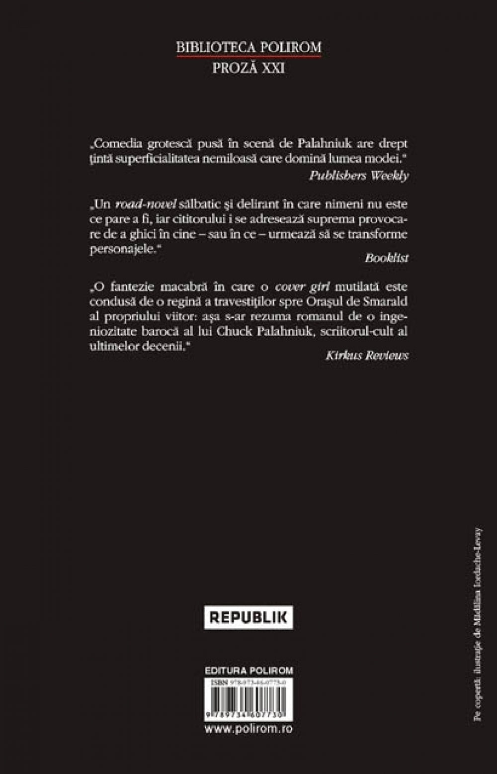 „Comedia grotesca pusa in scena de Palahniuk are drept tinta superficialitatea nemiloasa care domina lumea modei.” (Publishers Weekly)