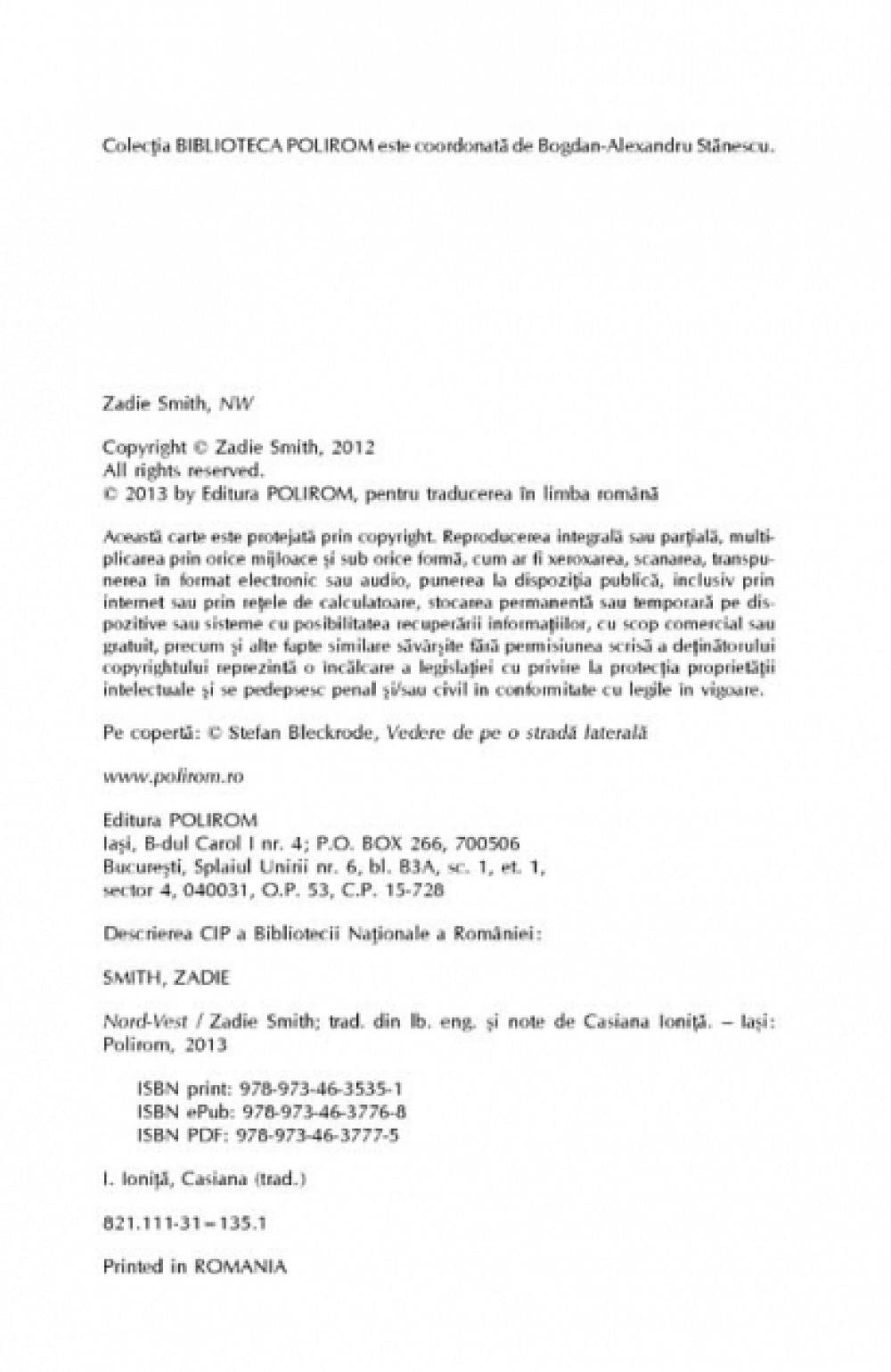 „Avem de-a face cu o carte in care nu poti prevedea niciodata cum se vor lega lucrurile sau ce se va intimpla in continuare... Nord-Vest etaleaza deliberat numeroasele abilitati de povestitor ale lui Zadie Smith, ca sa ne ajute sa descoperim un adevar profund, chiar daca unul riscant si dureros. Rezultatul este exceptional: o carte radicala, intensa si autentica.” (New York Times Book Review)