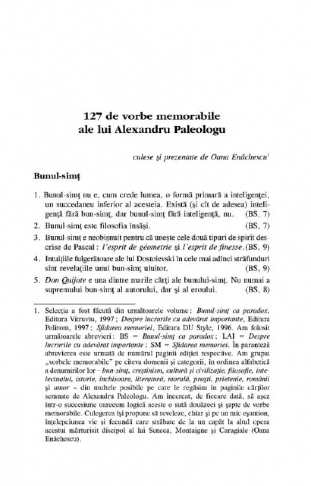 Editie ingrijita de Cristian Badilita si Tudorel Urian. „Un omagiu adus lui Alexandru Paleologu este, implicit si explicit, un omagiu adus aristocratiei, liberalismului fara partid, traditiei care se inradacineaza intr-o credinta naturala si senina in Dumnezeu, monarhiei si, desigur, nostalgiei Europei. Despre aceste lucruri incearca sa vorbeasca volumul de fata, nascut din iubire, admiratie si gratitudine fata de un om al carui destin se confunda cu insusi destinul Romaniei veacului XX. Boier interbelic, gustind iadul in temnitele comuniste, a traversat perioada anilor ‘60-’80 intre purgatoriu si compromis, publicind un numar de volume care, orice ar spune unii dintre inginerii teoriei literare, vor face deliciul multor generatii de cititori de acum incolo.” (Cristian Badilita)