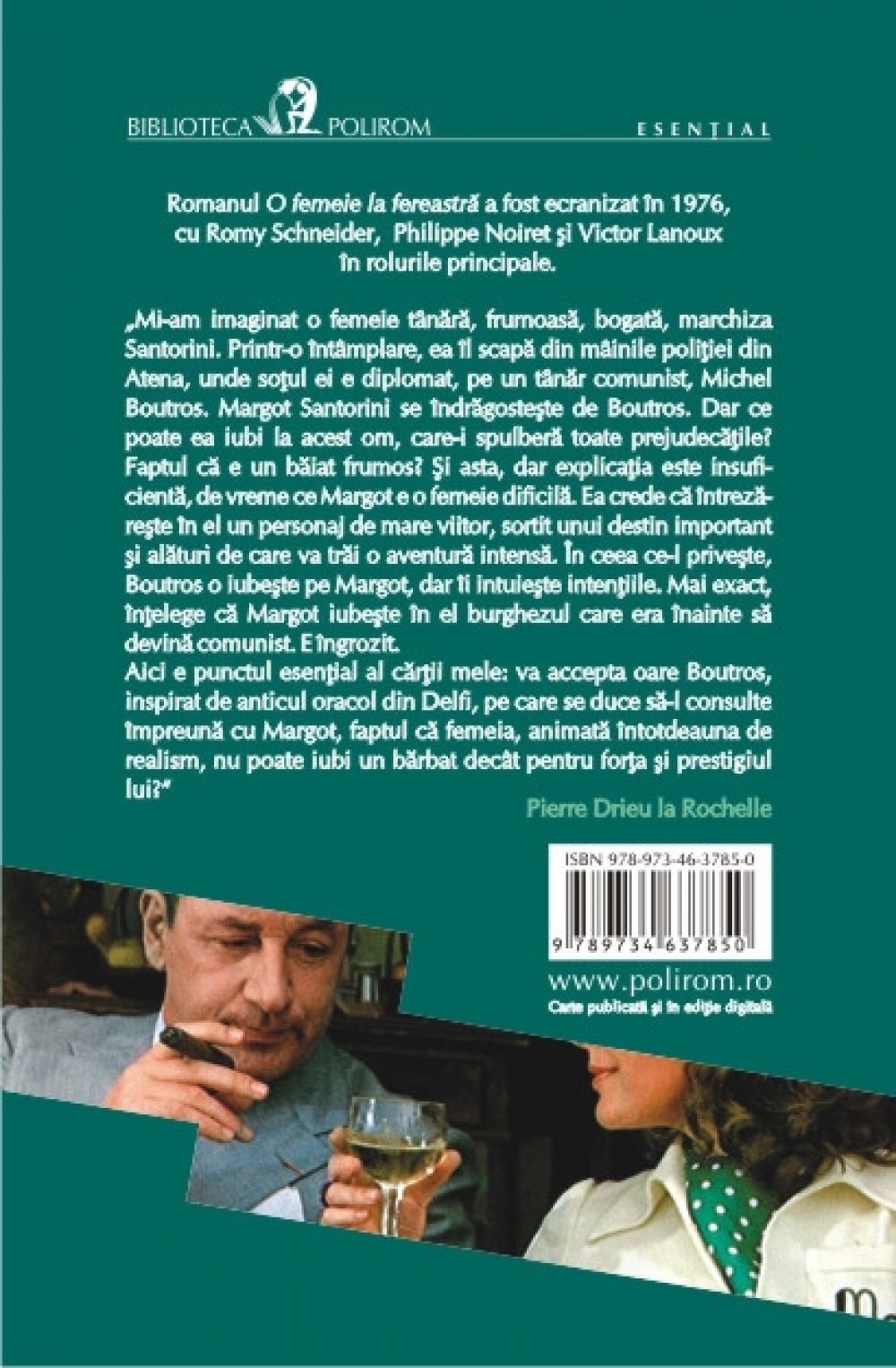 Aici e punctul esential al cartii mele: va accepta oare Boutros, inspirat de anticul oracol din Delfi, pe care se duce sa-l consulte impreuna cu Margot, faptul ca femeia, animata intotdeauna de realism, nu poate iubi un barbat decit pentru forta si prestigiul lui?” (Pierre Drieu la Rochelle)