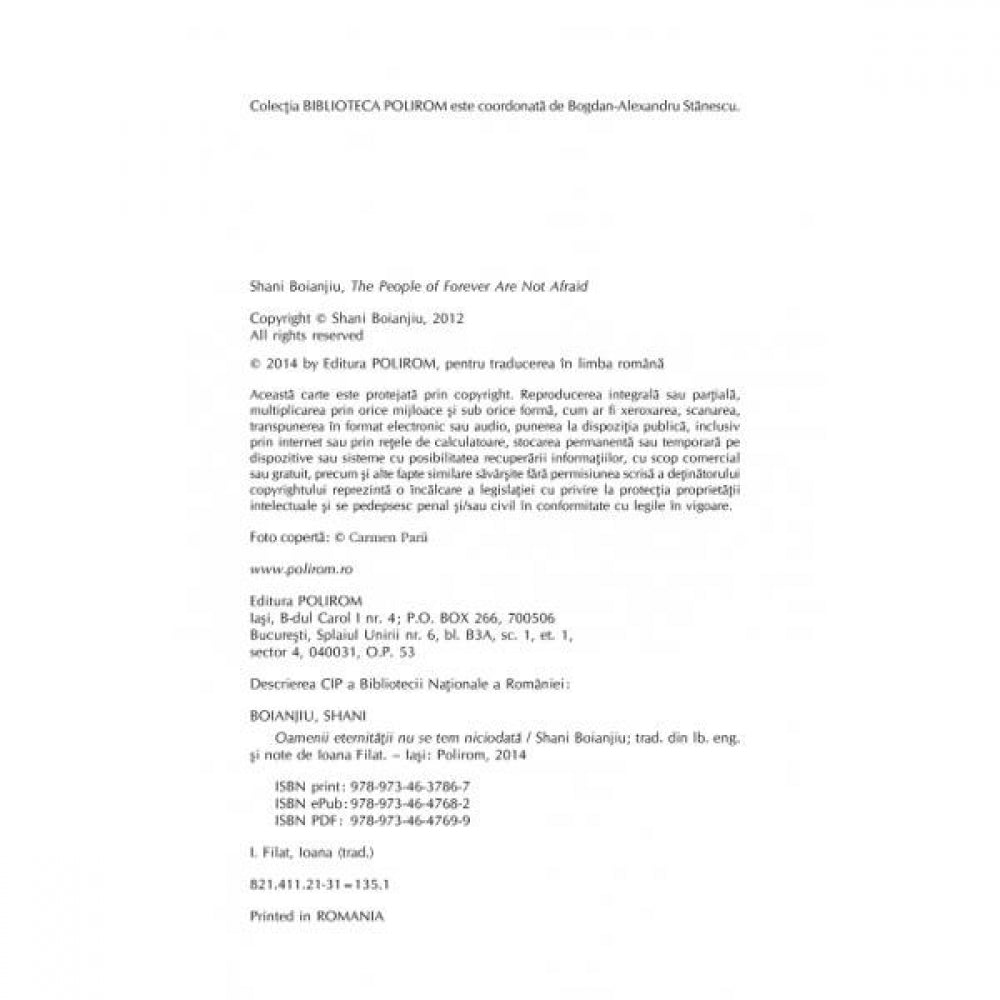 Oamenii Eternitatii Nu Se Tem Niciodata - Shani Boianjiu