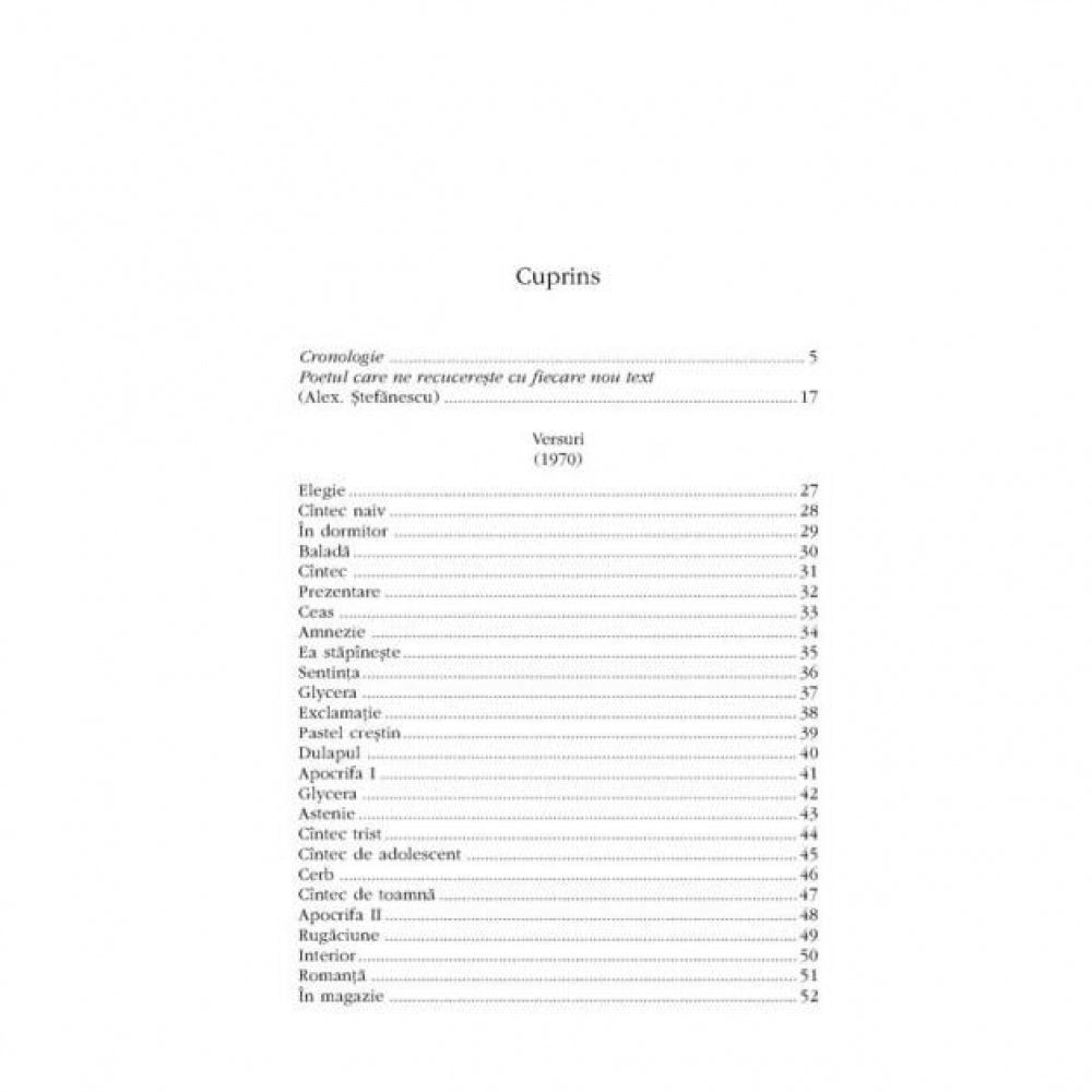 „In aceasta poezie au loc, abia atinse de un condei elegant si de un spirit care se rusineaza de propria gravitate, trairi serioase si importante, iubiri, exagerari dureroase, ratari si drame, transpuse in alt registru: departe de a le anula insemnatatea, frumoasa discretie a poetului nu face decit sa o sublinieze. Absenta patosului exterior n-ar trebui sa deruteze. Incintatoarele idile, in constituirea carora poetul de la Dolhasca exceleaza ca nimeni altul, incit ai zice ca detine un fel de brevet al neprihanirii si al imaturitatii nestiutoare, sint, de fapt, niste false idile, foarte inselatoare la suprafata atit de calm lunecatoare."(Lucian Raicu)