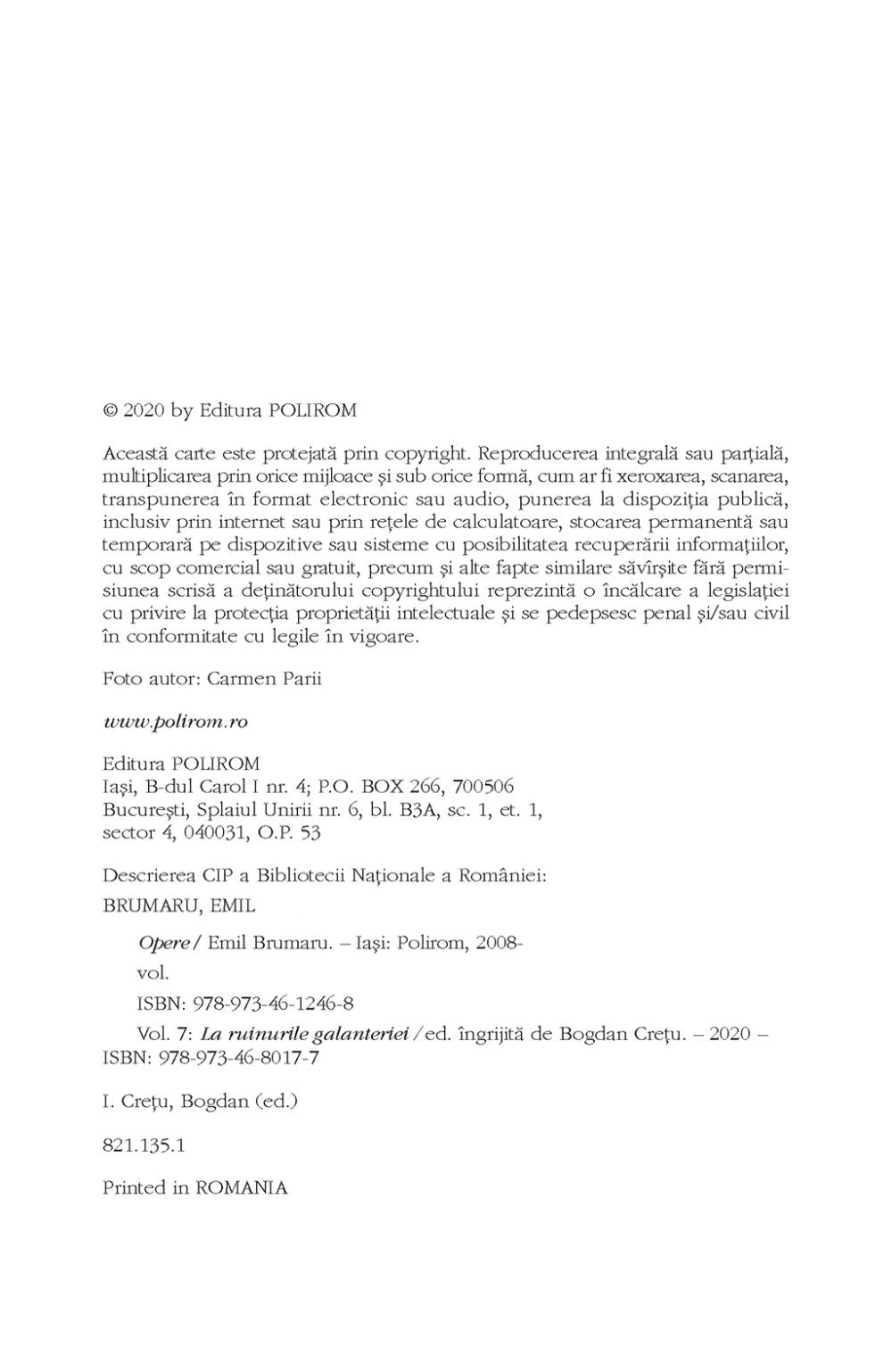 Opere VII. La ruinurile galanteriei. Opera postuma, Emil Brumaru
