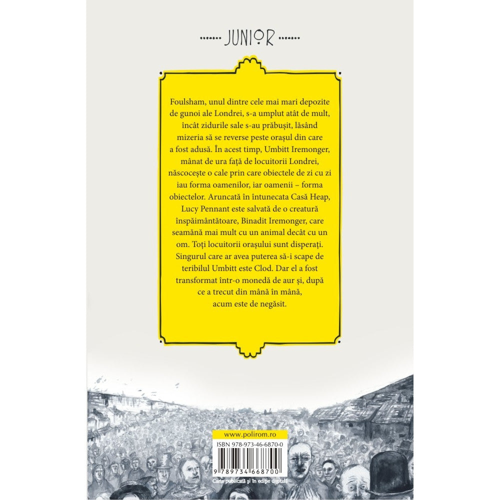 Foulsham, unul dintre cele mai mari depozite de gunoi ale Londrei, s-a umplut atit de mult, incit zidurile sale s-au prabusit, lasind mizeria sa se reverse peste orasul din care a fost adusa. In acest timp, Umbitt Iremonger, minat de ura fata de locuitorii Londrei, nascoceste o cale prin care obiectele de zi cu zi iau forma oamenilor, iar oamenii – forma obiectelor. Aruncata in intunecata Casa Heap, Lucy Pennant este salvata de o creatura inspaimintatoare, Binadit Iremonger, care seamana mai mult cu un animal decit cu un om. Toti locuitorii orasului sint disperati. Singurul care ar avea puterea sa-i scape de teribilul Umbitt este Clod. Dar el a fost transformat intr-o moneda de aur si, dupa ce a trecut din mina in mina, acum este de negasit.