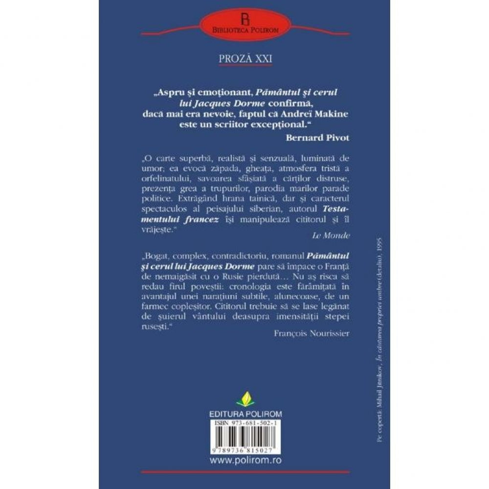 Traducere de Dan Radu Stanescu. Romanul nu este nici o continuare a cartilor anterioare ale autorului(a carui bibliografie numara inca sase romane), dar nici complet straina de ele. Drama unei copilarii consumate sub norii apasatori ai stalinismului, pacaleala mai multor „dezgheturi” succesive, confuzia de valori ca si inutilitatea unor sacrificii, toate aceste teme reapar si aici inscrise intr-un filigran extrem de delicat, dar si seducator. Delicat, pentru ca Makine evita tonurile dure chiar daca subiectul il incita la cruzime, preferind aluzia, aparenta, aburul multicolor al metaforei. Seducator, pentru ca scriitorul rus stramutat la Paris isi imbraca naratiunea sincopata intr-o urmarire de gen politist, care nu are cum sa nu-l cucereasca pe cititor..