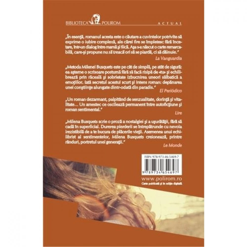 „Metoda Milenei Busquets este pe cit de simpla, pe atit de sigura: ea asterne o scrisoare postuma fara sa faca risipa de «tu» si echilibreaza prin raceala si sobrietate izbucnirea uneori salbatica a emotiilor. Iata secretul acestui scurt si intens roman: depanarea unei constiinte alungate dintr-odata din paradis.” (El Periodico)