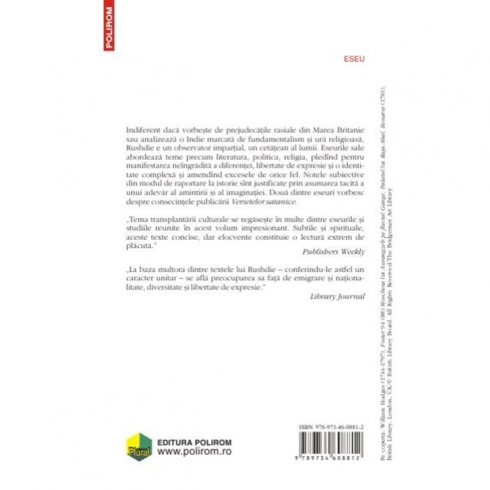 Indiferent daca analizeaza prejudecatile rasiale din Marea Britanie sau trece in revista o Indie marcata de fundamentalism si ura religioasa, Rushdie e un observator impartial, un cetatean al lumii. Eseurile sale abordeaza teme precum literatura, politica, religia, pledind pentru manifestarea neingradita a diferentei, libertate de expresie si o identitate complexa si amendind excesele de orice natura. Notele subiective din modul de raportare la istorie sint justificate prin asumarea tacita a unui adevar al amintirii si al imaginatiei. Doua dintre eseuri vorbesc despre consecintele publicarii Versetelor satanice.