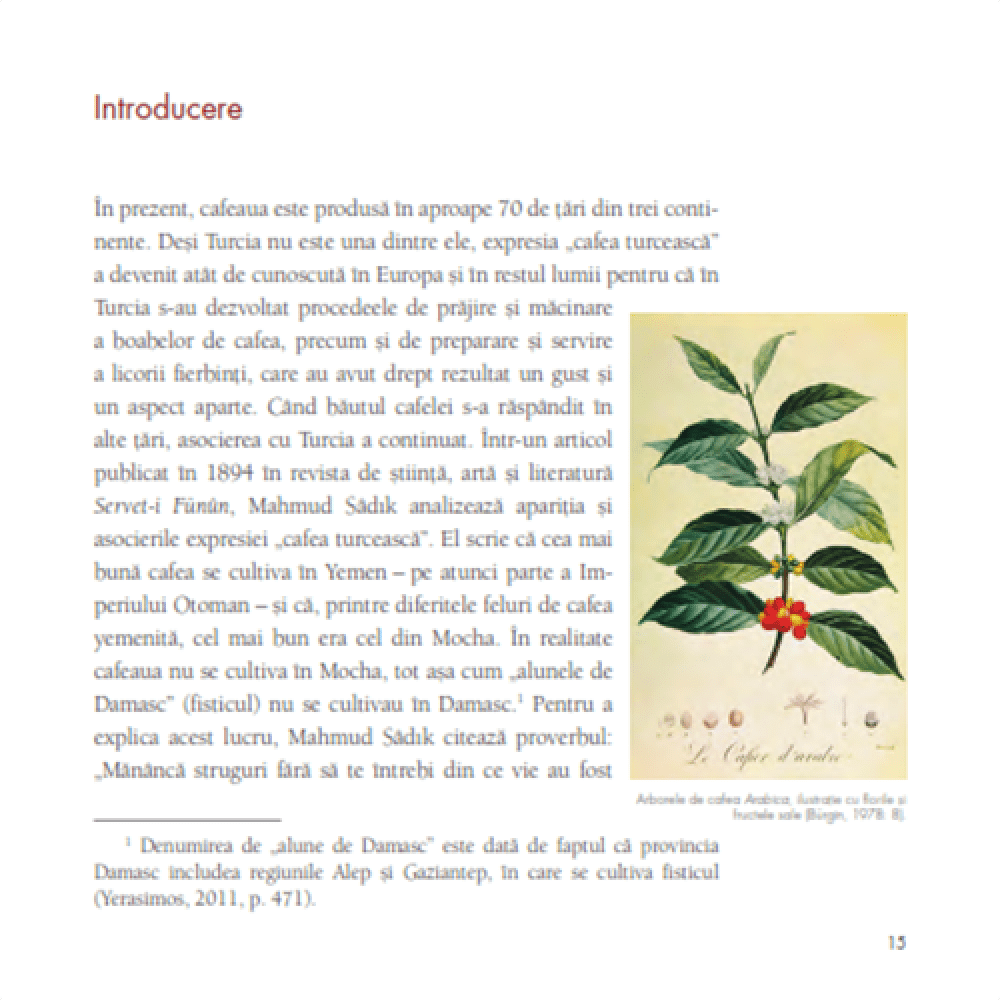 Cafeaua si cultura cafelei au patruns in tinuturile otomane mai intai prin intermediul arabilor, al dervisilor si al proprietarilor de cafenele, apoi s-au raspandit in lumea intreaga, mai ales in tarile europene. Cafeaua a devenit astfel o marfa de comert international nemilos. Daca la inceput a fost un «produs scump si o bautura scumpa», s-a transformat intr-o placere noua si «inofensiva» care a inlocuit vechile obiceiuri si, desi supusa prohibitiei religioase si politice, a capatat o insemnatate uriasa din toate punctele de vedere.” M. Sabri Koz