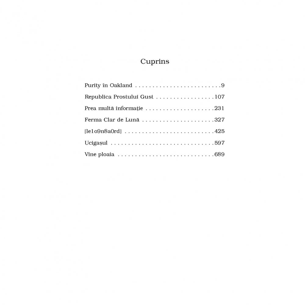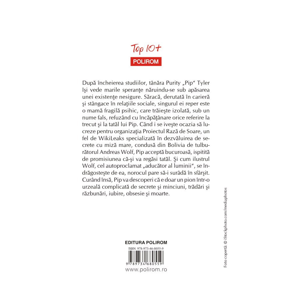 Dupa incheierea studiilor, tinara Purity „Pip” Tyler isi vede marile sperante naruindu-se sub apasarea unei existente nesigure. Saraca, derutata in cariera si stingace in relatiile sociale, singurul ei reper este o mama fragila psihic, care traieste izolata, sub un nume fals, refuzind cu incapatinare orice referire la trecut si la tatal lui Pip.