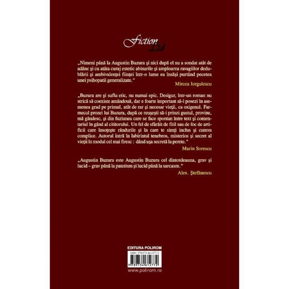 „Nimeni pina la Augustin Buzura si nici dupa el nu a sondat atit de adinc si cu atita curaj estetic abisurile si amploarea ravagiilor dedublarii si ambivalentei fiintei intr-o lume ea insasi purtind pecetea unei psihopatii generalizate.”(Mircea Iorgulescu)