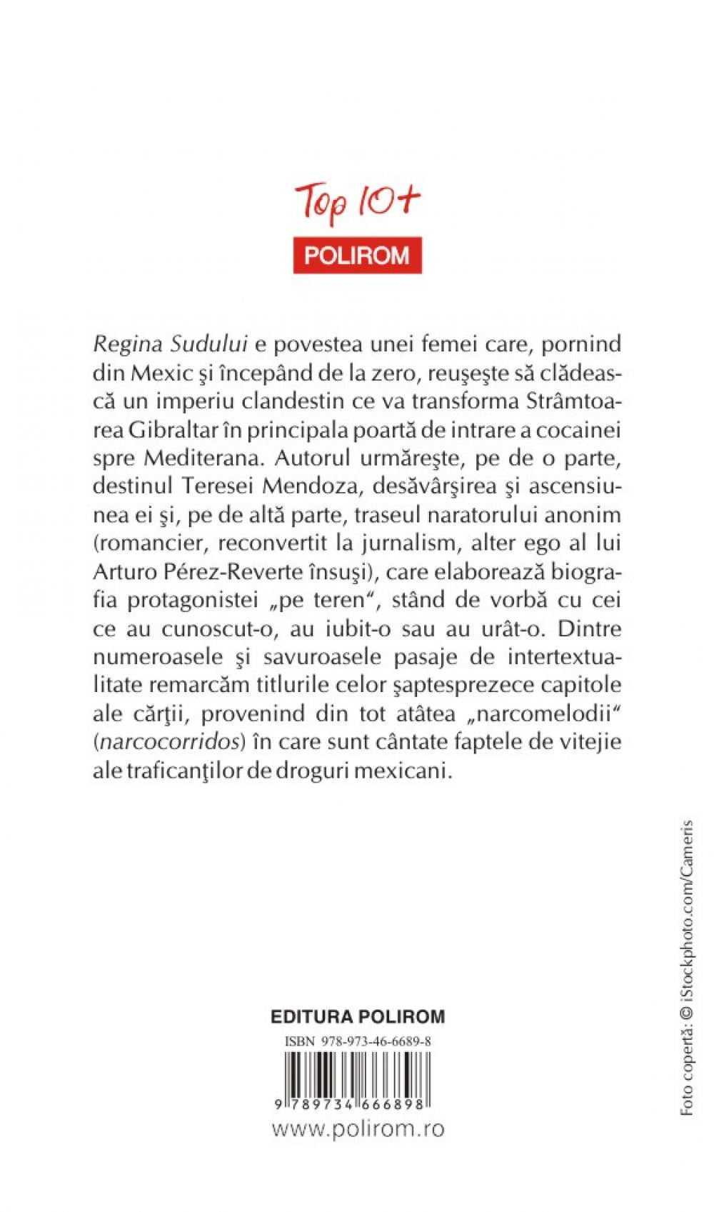 „Acest roman exceptional, cu o documentatie exemplara, reconstituie etapele vietii unui personaj fascinant, Teresa Mendoza, nascuta intr-un cartier sarac, devenita o adevarata «regina a Sudului», redutabila, periculoasa si fascinanta. Intr-o lume unde nimeni nu se increde nici in umbra sa, acolo unde a muri de moarte violenta inseamna a muri de moarte naturala, Teresa Mendoza a ucis pentru a supravietui, a parasit Mexicul pentru Spania si a infundat puscaria. Inteligenta, cu singe rece, s-a facut respectata de traficantii de droguri. O aventuriera invaluita in mister, puternica Teresa Mendoza a cumparat o lume intreaga caci toata lumea era de vinzare.” (Monique Balmer)