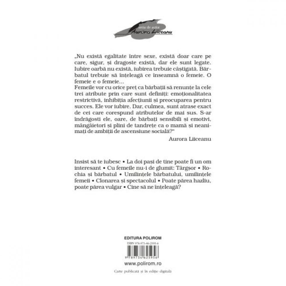 Femeile vor cu orice pret ca barbatii sa renunte la cele trei atribute prin care sint definiti: emotionalitatea restrictiva, inhibitia afectiunii si preocuparea pentru succes. Ele vor iubire. Dar, culmea, sint atrase exact de cei care corespund atributelor de mai sus. S-ar indragosti ele, oare, de barbati sensibili si emotivi, mingiietori si plini de tandrete ca o mama si neanimati de ambitii de ascensiune sociala?” (Aurora Liiceanu)