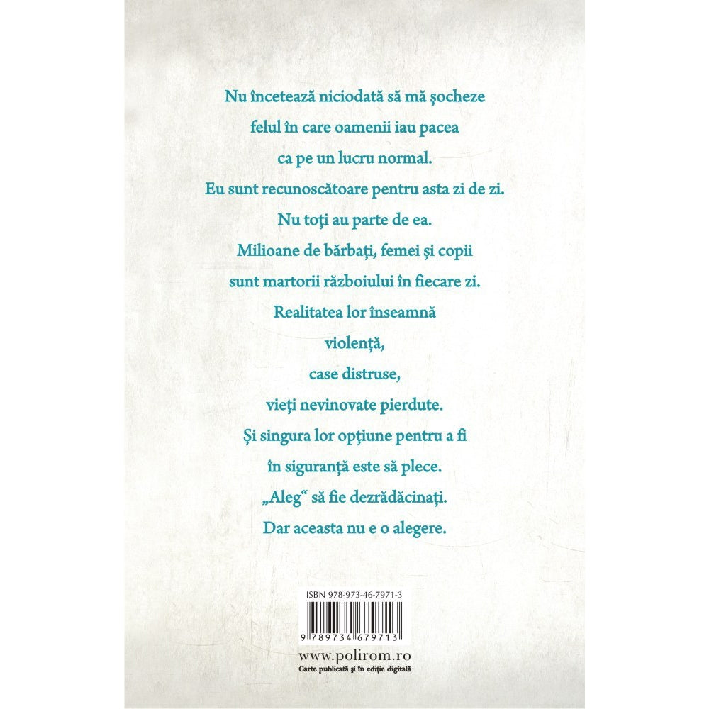 Cistigatoarea Premiului Nobel pentru Pace si autoarea de bestselleruri Malala Yousafzai le aduce in fata noastra pe citeva dintre persoanele aflate in spatele statisticilor si stirilor zilnice despre milioanele de oameni din intreaga lume ce sint fortati sa-si paraseasca domiciliul. Vizitele facute de Malala in taberele de refugiati au ajutat-o sa vada cu alti ochi propria experienta a dezradacinarii – mai intii ca persoana stramutata intern, in perioada copilariei petrecute in Pakistan, apoi ca activist la nivel international ce putea calatori oriunde in lume, mai putin in iubita ei tara natala. In Sintem dezradacinate, Malala nu spune doar povestea ei despre adaptarea la o noua viata si dorul de casa, ci impartaseste si povestile unor tinere pe care le-a intilnit in timpul numeroaselor ei calatorii – tinere care si-au pierdut familia, comunitatea si, adesea, singurul mod de viata pe care-l stiau. In plina criza a migratiei, in timp de razboi si conflicte izbucnite la granita, Sintem dezradacinate este un avertisment important care aminteste ca fiecare dintre cei 68,5 milioane de oameni ce sint stramutati in prezent reprezinta o persoana – adesea tinara – cu propriile sale sperante si aspiratii, care merita sa traiasca in pace si sa-i fie respectate drepturile universale.